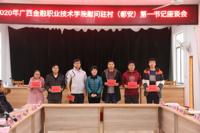 1月15日,学院党委书记沈立君带队到都安县龙湾乡走访慰问我院派出的6位第一书记,通过召开座谈会和深入实地调研的方式进一步了解第一书记工作、生活等情况。学院党委副书记、纪委书记刘华政、党委委员、相关处室、系部领导及龙湾乡党委书记牙韩壮等领导参加座谈会。会议由学院党委副书记、纪委书记刘华政主持。