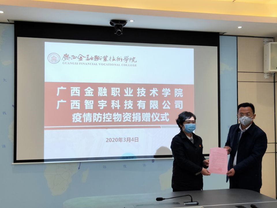 党委书记沈立君代表学校向广西智宇科技有限公司的无私捐赠、爱心义举表示由衷的感谢。她表示,在当前防疫物资紧缺的情况下,爱心企业伸出援手,为学校战胜疫情增添了力量和信心,为学校坚决打赢疫情防控阻击战提供了坚实保障。疫情发生后以来,学校一直在全力开展校园疫情防控工作,值班人员春节期间仍坚守岗位,坚守校园防疫一线,恪守岗位职责,努力做好各项工作 。金职院师生员工人数一万余人,校园疫情防控工作任务艰巨,但是学校会尽心尽责,义不容辞,全力确保师生员工的健康安全。与此同时,学校也会严格管理捐赠的抗疫物资,做到物尽其用。