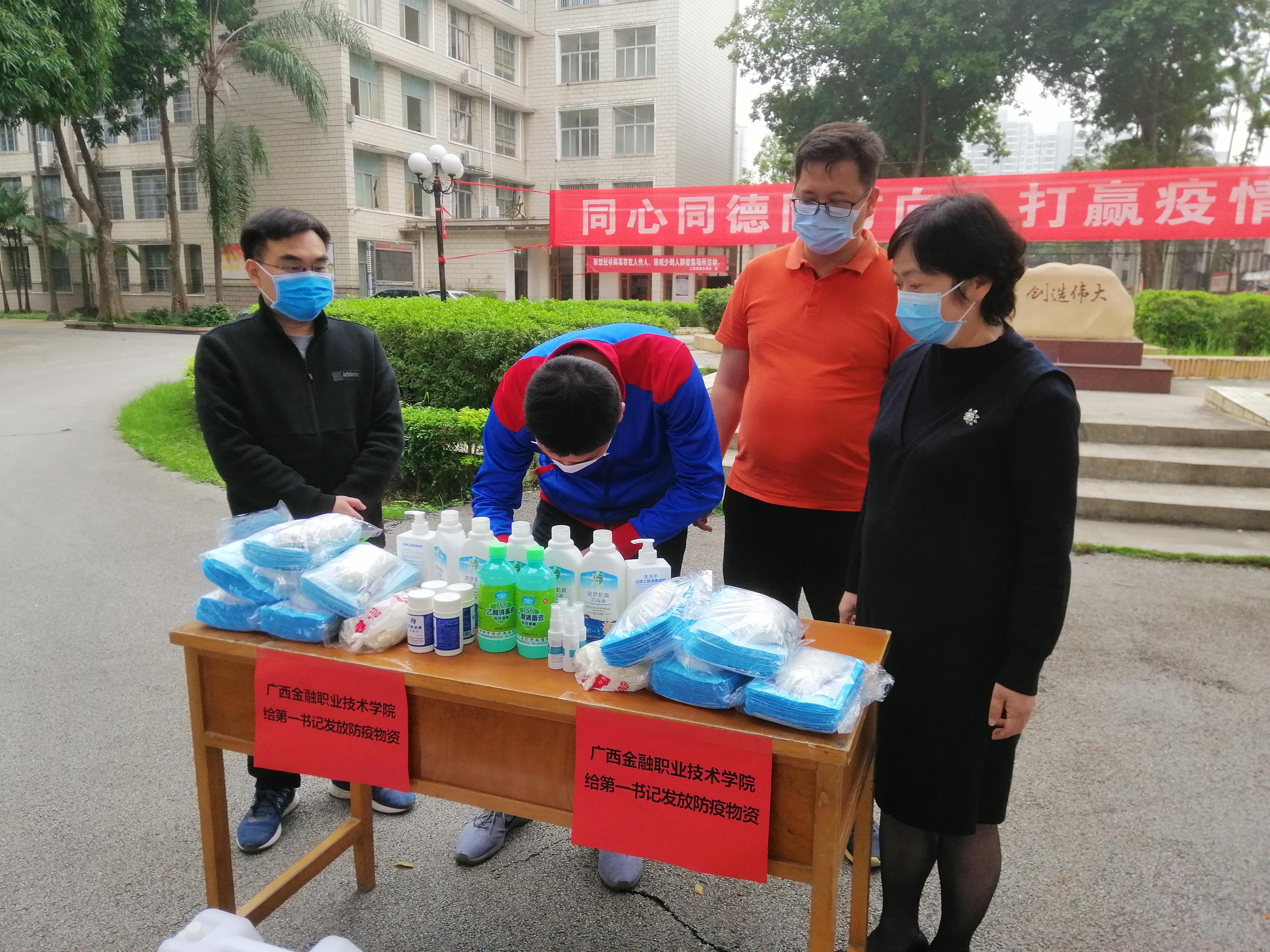 为有力支援第一书记在一线开展好疫情防控,全力助力脱贫攻坚工作。3月29日,学院党委书记沈立君、副院长潘大胜代表学校在东校区为我校派驻都安县的第一书记发放防疫物资和办公设备,党政办公室、组织人事处、后勤管理与保卫处负责人参加发放仪式。