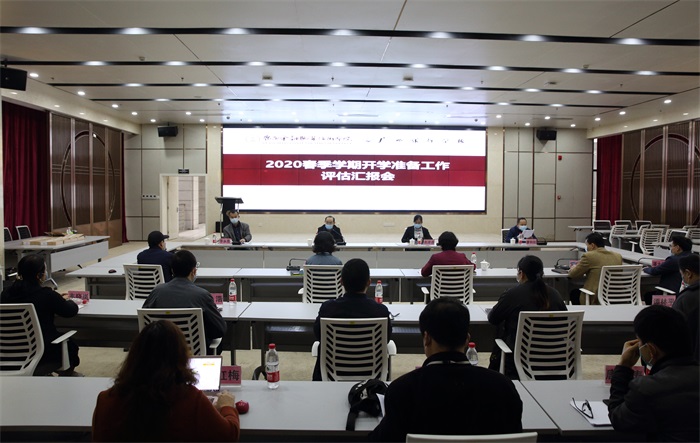按照自治区新型冠状病毒感染的肺炎疫情防控工作领导小组指挥部开学工作组的工作部署,4月8日上午,自治区教育厅副厅长李清先一行4人组成的评估组到我校开展开学准备评估工作。学校党委书记沈立君、校长莫海燕,党委副书记、纪委书记刘华政、常务副校长谢沛善、副校长潘大胜以及学校疫情防控工作领导小组成员参加会议并查看现场。