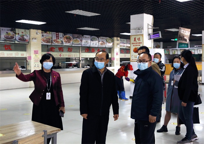 会后,检查组一行实地走访了西校区校门、防疫物资储备地、监控室、教室、食堂、学生宿舍、临时观察点等场所,深入了解校园管理、环境消毒、返校程序、分散就餐、住宿安排、医务配备和防疫物资储备等工作情况,查阅了学校疫情防控的工作台账。