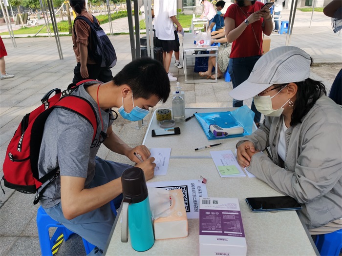 清晨阳光还未拂上树梢,我校志愿者们便站在岗位上协助老师们等待着第二批学生的到来。他们各司其职,有的充当新返校生的领路人,讲解进校流程;有的充当老师的得力助手,协助老师给返校学生测量体温、行李消杀、审核返校申请审批单;有的充当返校学生的好帮手,义务帮助同学们扛行李……他们在烈日之下热情服务,或许阳光刺眼,或许热气蒸腾,或许劳苦的汗水早已浸湿衣衫,但依旧没有抵挡住志愿者们心中的热情、因帮助别人而绽放的微笑。