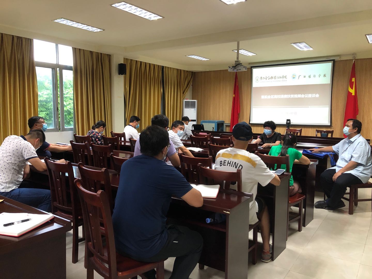 6月5日,在自治区教育厅组织召开的2020年全区高校消费扶贫工作视频会议结束后,我校立即组织召开落实全区高校消费扶贫视频会议精神座谈会,及时传达2020年全区高校消费扶贫工作视频会议精神。学校党委书记沈立君、党委副书记、纪委书记刘华政、组织人事处、后勤管理与保卫处、财务处、工会等部门负责人以及派驻都安县的6名驻村第一书记参加座谈会。