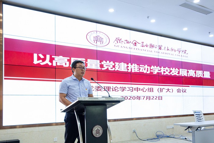 7月22日,我校在西校区道德大讲堂召开党委理论中心组2020年第四次专题学习会,本次学习会以《以高质量党建推动学校发展高质量》为主题,深入学习《习近平谈治国理政》第三卷;学习习近平总书记给北京大学援鄂医疗队全体“90后”党员的回信、习近平总书记给复旦大学青年师生党员回信;学习《高等学校课程思政建设指导纲要》;学习习近平总书记在中央政治局第二十一次集体学习时重要讲话精神;对全面履行从严治党主体责任,进一步加强廉政警示教育提出明确要求。学校党委书记沈立君主持会议并作讲话。学校党委委员,党委理论学习中心组成员、各党支部支委、各系部团总支负责人参加会议。