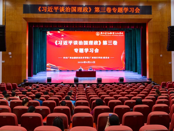 9月22日,我校在西校区国际会议中心举行《习近平谈治国理政》第三卷专题学习会,邀请广西区委党校领导力拓展部主任、教授,自治区讲师团特骋专家许进品教授做专题报告。全体教职工参加学习会。专题学习会由党委书记沈立君同志主持。