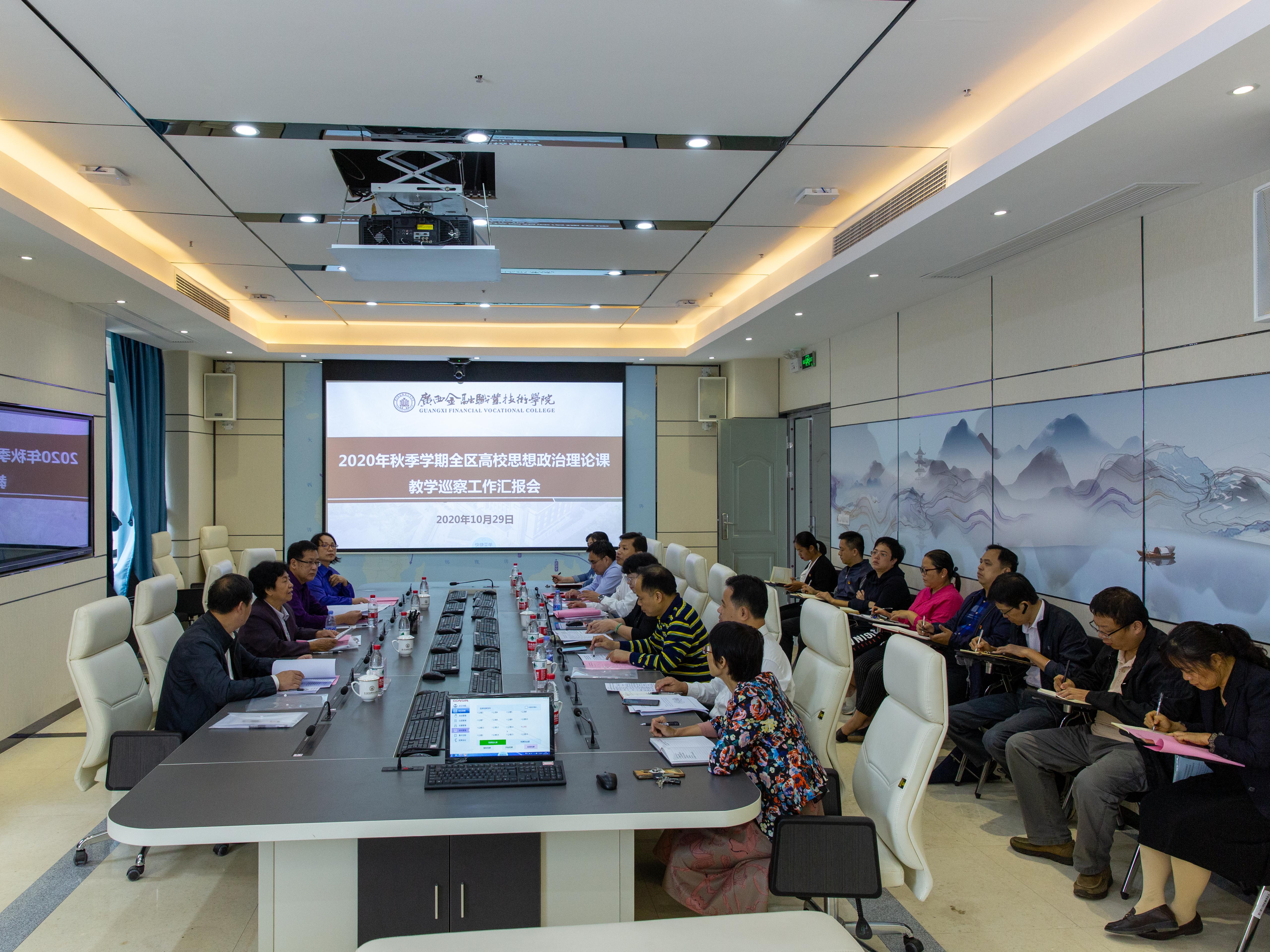 10月29日下午,自治区高校思想政治理论课教学工作第三巡察组专家陈雪斌、杨武、陈洪涛、龙海平一行来到我校开展对思想政治理论课的教学指导工作。学校领导、相关部门主要负责人以及思政课课程负责人参加了汇报会和反馈会。会议由党委副书记、纪委书记刘华政主持。