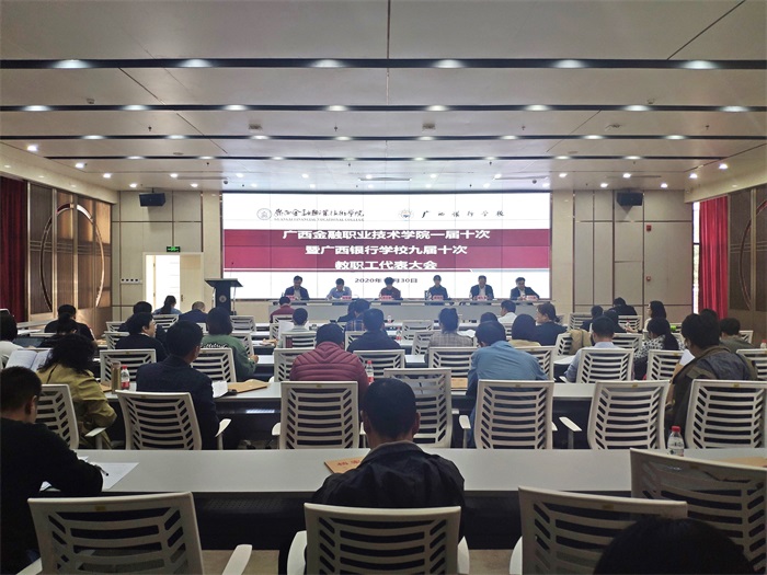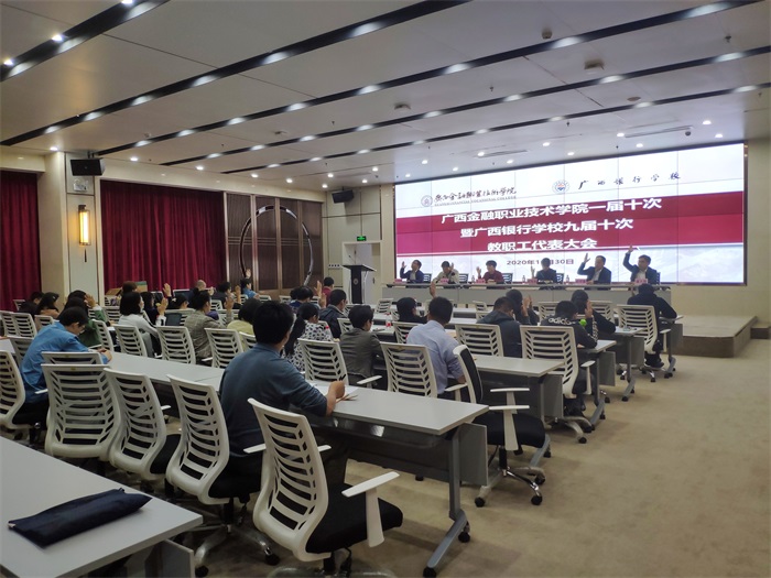 10月30日,广西金融职业技术学院一届十次暨广西银行学校九届十次教职工代表大会在西校区道德大讲堂召开。38名正式代表、16名列席代表参加了本次会议。