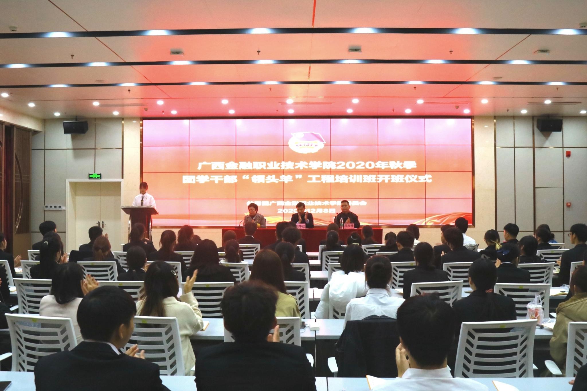 为提高团学干部的思想政治基础、综合实践能力,培养和造就一支政治坚定、作风过硬、素质全面、能力突出的团学干部,12月8日晚,我校在西校区道德大讲堂举行2020年秋季团学干部“领头羊”工程培训班开班仪式。学校党委副书记、纪委书记刘华政,学生工作与招生就业处副处长、校团委书记周海峰、校团委副书记朱丽君,以及团学干部“领头羊”工程培训班的122名学员参加开班仪式。开班仪式由校团委副书记朱丽君主持。