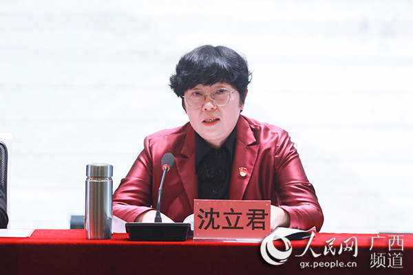 广西金融职业技术学院党委书记沈立君在揭牌仪式上致辞。人民网 吴明江摄