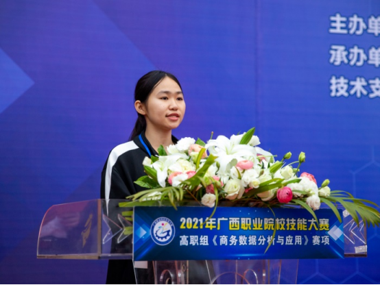 开幕式上,莫校长致开幕词,对出席竞赛的各位领导、来宾、全体裁判员、参赛选手表示热烈欢迎,向本次比赛的技术支持企业表示衷心的感谢,对所有为举办本次大赛付出辛勤劳动的工作人员表示亲切的问候。莫校长表示,“商务数据分析与应用”是顺应了广西数字经济产业发展的需要。本次大赛为我区职业院校师生切磋技艺和交流提供了良好平台,希望通过本次竞赛进一步提高学生职业技能与市场需求的吻合度,推动我区商务大数据高技能人才的成长成才,为建设壮美广西、共圆复兴梦想提供强有力的技能人才支撑。祝愿所有参赛选手以良好的心态参加比赛,充分发挥技能才干,赛出风格,赛出水平,以良好的姿态开启“十四五”的新征程!