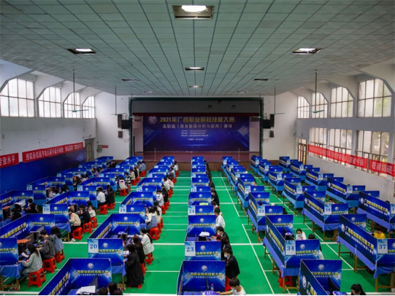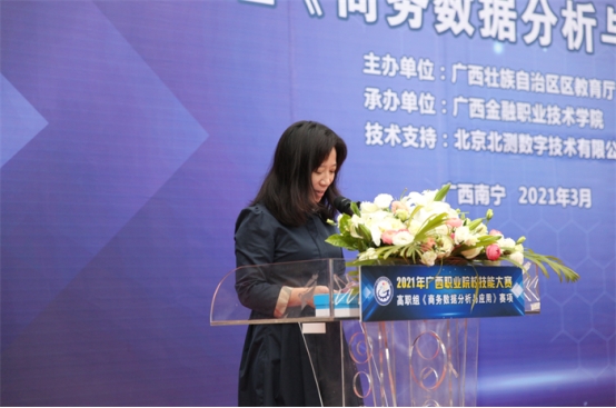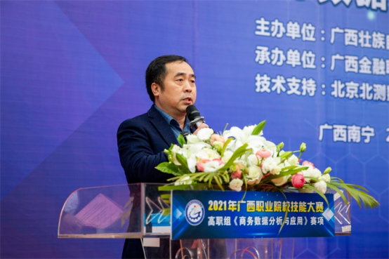 2021年3月25日广西职业院校技能大赛高职组《商务数据分析与应用》赛项在我校东校区成功举办。我校校长莫海燕、经济管理系主任卢华东、竞赛裁判长喻光继教授、北京北测数字技术有限公司张永钦经理以及参赛院校师生代表参加了开幕式。
