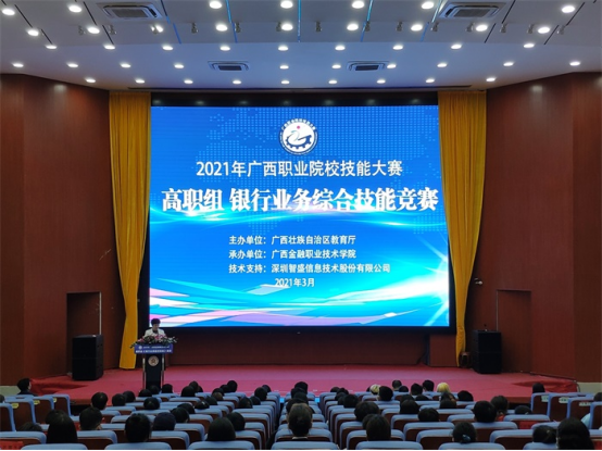 本次大赛由广西壮族自治区教育厅主办,广西金融职业技术学院承办、深圳智盛信息技术股份有限公司提供技术支持。大赛包括“银行从业知识”、“银行基本技能”和“银行业务能力”三大模块,共有来自全区16所高职院校的30支参赛队伍、120名选手来到我院角逐荣誉。