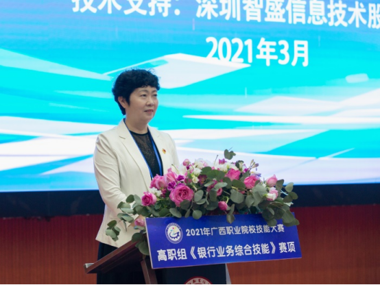 沈书记表示,2021年,是中国共产党成立100周年,是“十四五”规划开局之年,开启全面建设社会主义现代化国家新征程的关键之年,职业教育也迈入了提质培优、增值赋能的高质量发展新阶段,被赋予了更加重要的职责与使命。随着数字经济成为全球经济重要驱动力和新增长点,数字人民币在跨境支付结算中的运用,将成为趋势,广西作为我国金融改革的重要试验田,将银行业务综合技能列入比赛项目,不仅是为我区职业院校师生切磋技艺和交流经验提供良好平台,提高学生技术能力与市场需求的吻合度,更是顺应了我国新技术革命和产业结构调整的需求,适应广西数字经济产业发展的需要,进一步推动我区金融行业高技能人才的成长成才,为建设壮美广西、共圆复兴梦想提供强有力的技能人才支撑。祝愿所有参赛选手赛出风格,赛出水平,以优异的成绩向建党100周年献礼!