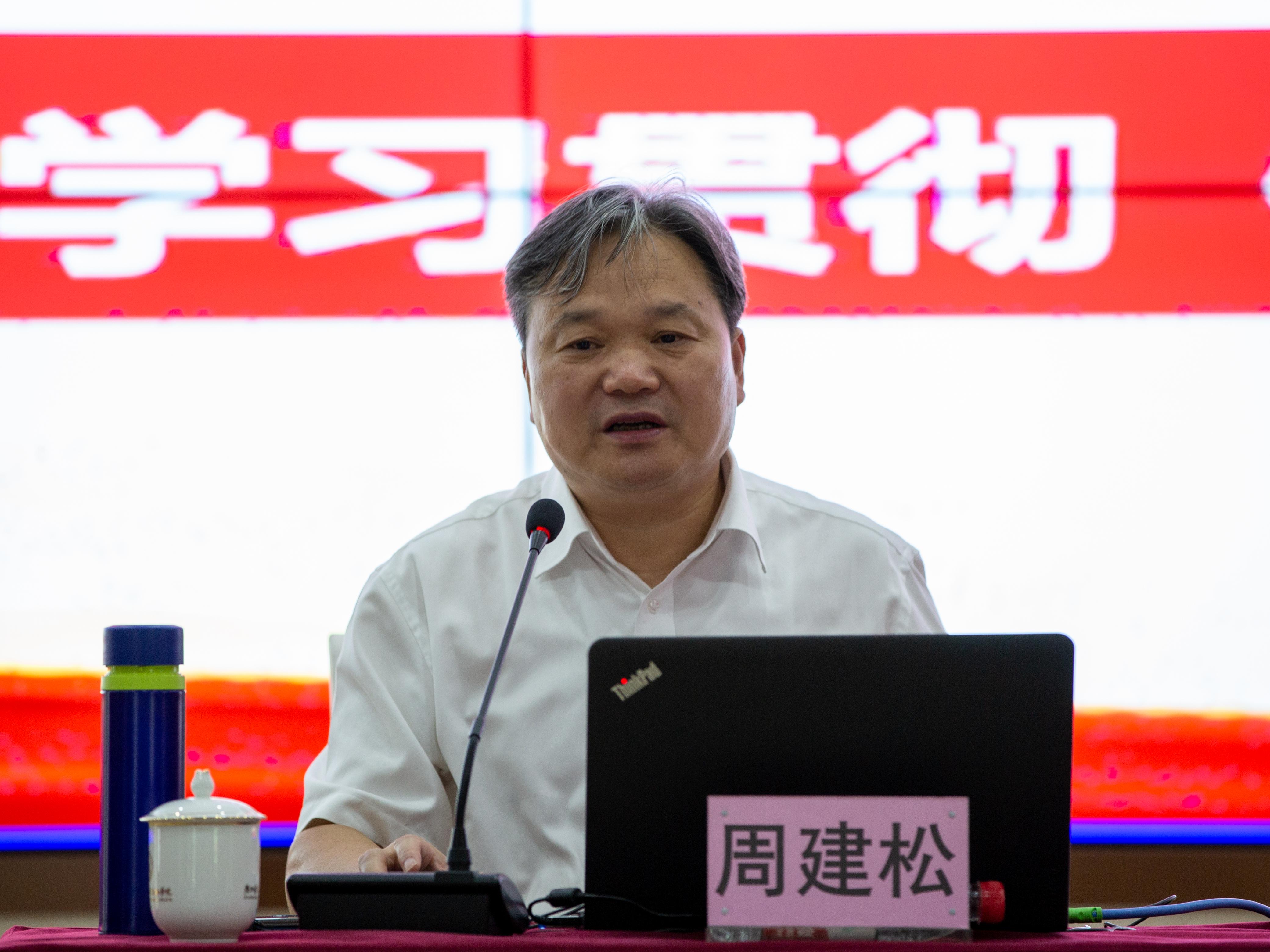 6月25日下午,我校在西校区道德大讲堂召开“学习贯彻条例,创新党建实践”培训会。邀请浙江金融职业学院党委书记、中国高等教育学会职业教育分会会长、全国高职高专院校党委书记论坛委员会副主任周建松教授为我校党委委员、各党支部委员专题培训新修订的《中国共产党普通高等学校基层组织工作条例》(以下简称《条例》)。我校党委书记沈立君主持会议并发言。