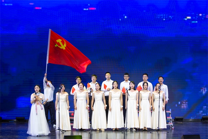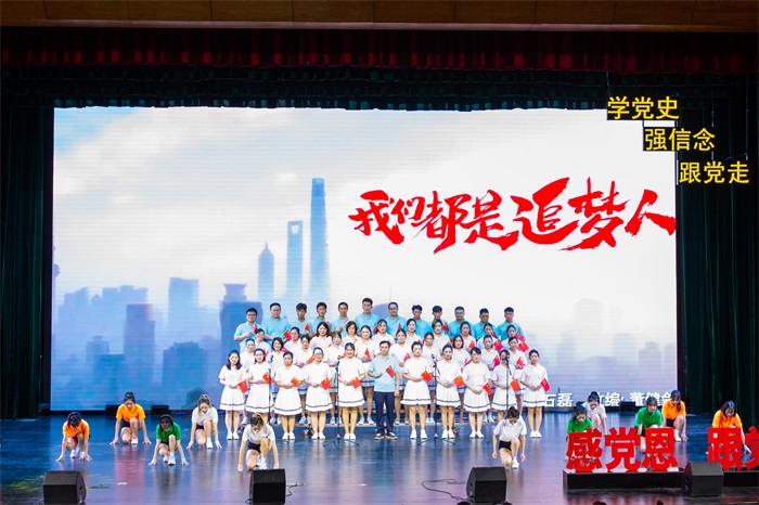 一幕幕精彩的演出带领现场师生重温党的光辉历程,深刻激发广大师生坚定决心跟党走、奋斗新时代的真挚情感,使在场师生受到了一次深入人心的精神洗礼。最后,晚会在歌曲《没有共产党就没有新中国》《歌唱祖国》的合唱中落下帷幕。此次活动,用文艺汇演的形式讴歌党的光辉业绩,回顾和展现中华民族伟大复兴中国梦的奋斗历程,引导广大师生感党恩、跟党走,把对党的真挚情感化为奋斗建功新时代的实际行动,向建党100周年献礼。
