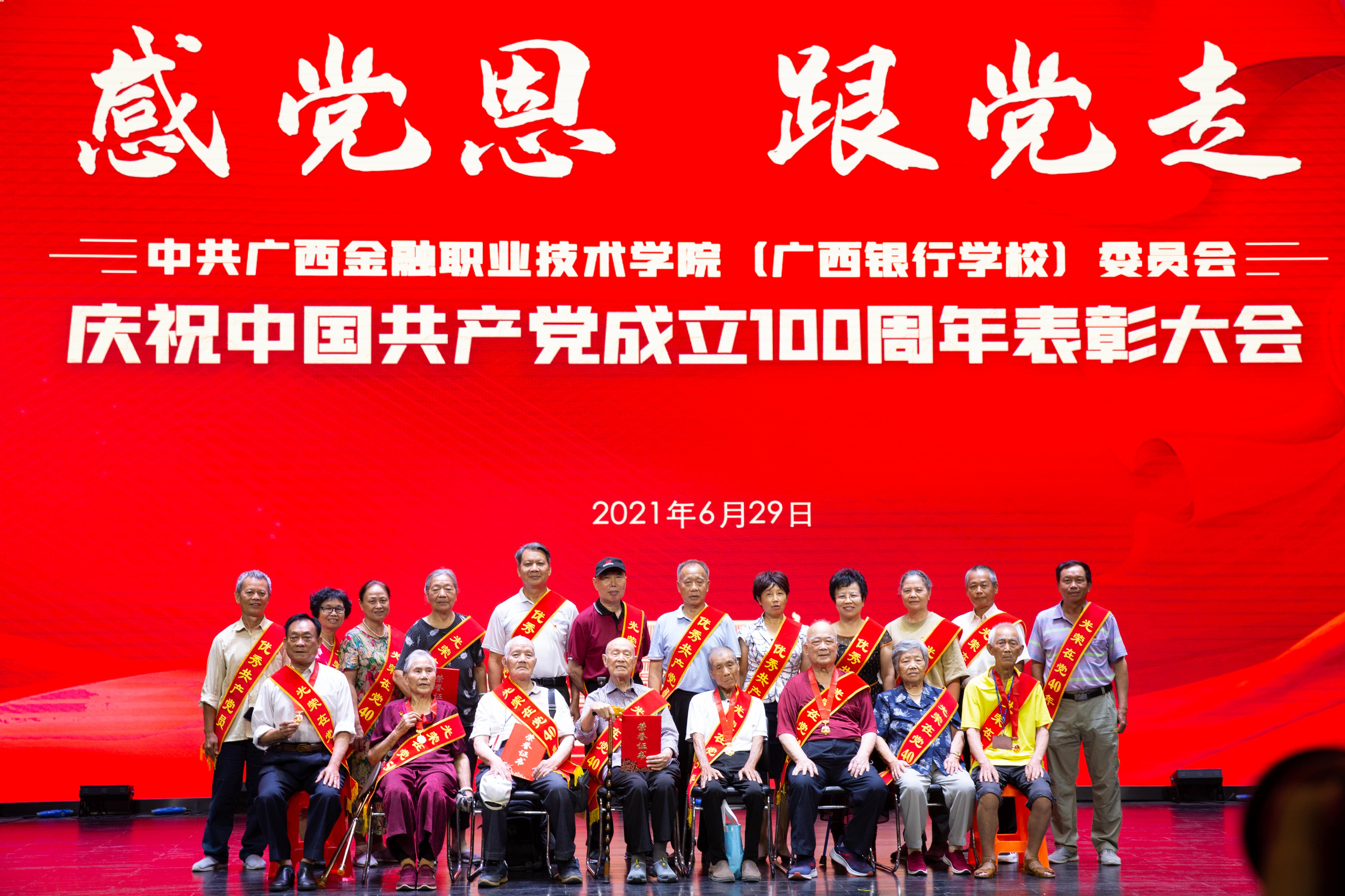 在表彰大会上颁发 “光荣在党50年”纪念章、“光荣在党40年”荣誉证书;表彰荣获自治区、区直工委、教育厅、学校的先进基层党组织和优秀党员、党务工作者,表彰脱贫攻坚的先进集体和个人,表彰“学习强国”的先进集体和学习标兵以及在自治区教育厅直属机关党史学习教育“党员心声大家谈”征文比赛、我校“同心向党”书画摄影比赛中获奖的个人。