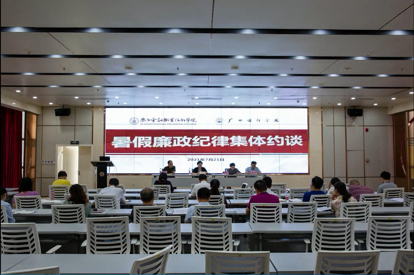7月21日,我校在西校区道德大讲堂开展暑假廉政纪律集体约谈会。学校领导、各党支部书记及二层单位负责人参加会议,会议由党委书记沈立君主持。