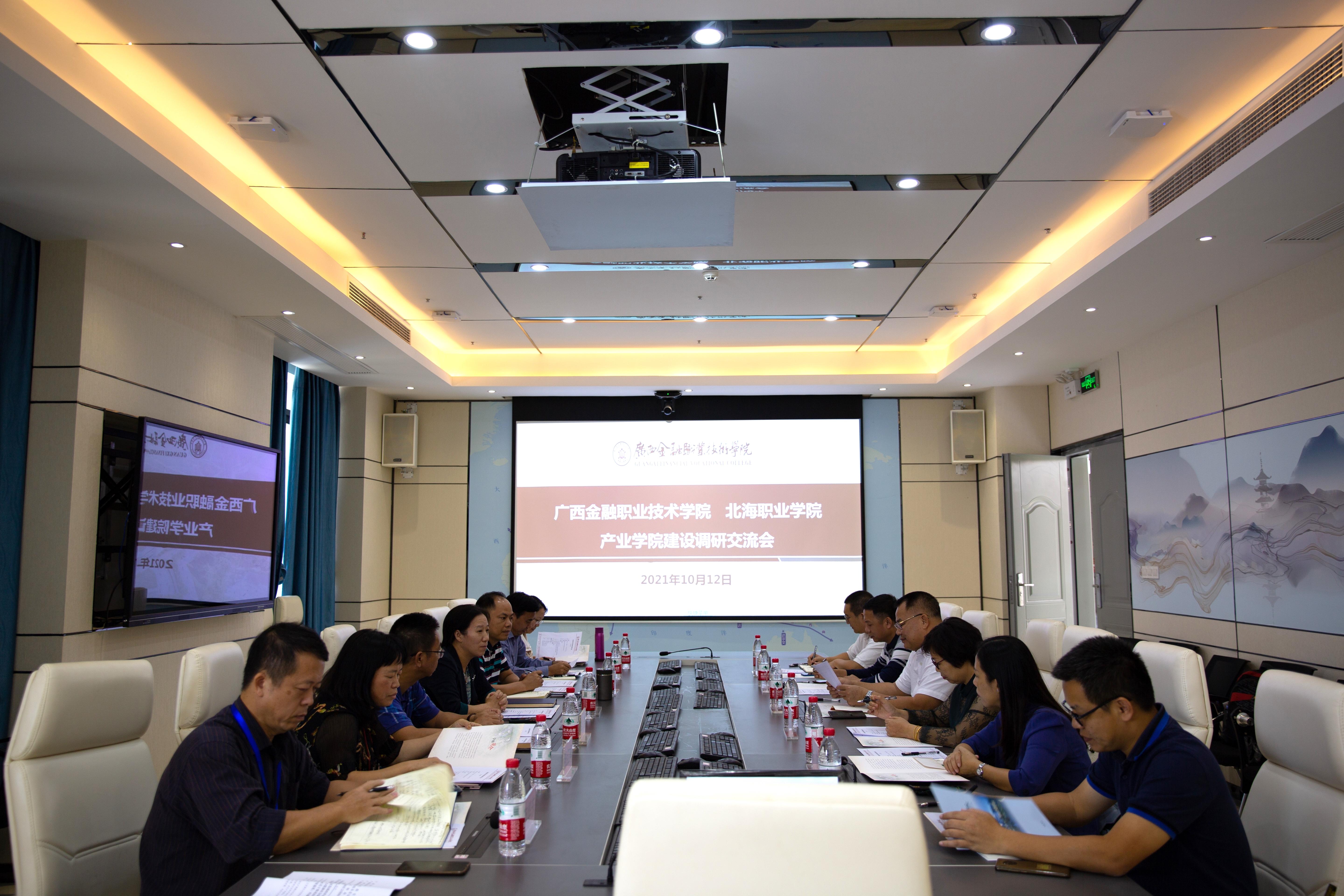 10月12日下午,北海职业学院院长蓝伟一行到我院调研交流。学院院长莫海燕、副院长谢沛善及相关部门参加了本次调研交流,并在西校区103会议室召开座谈会。