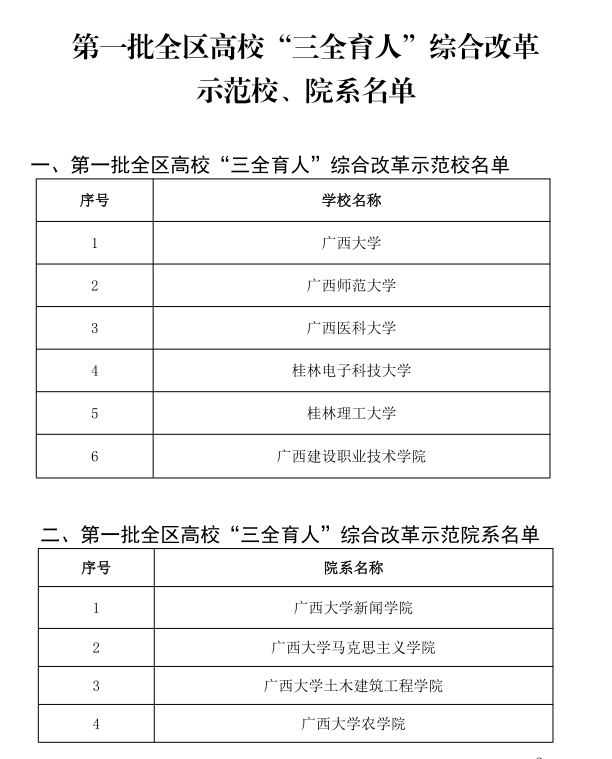 近日,自治区教育厅公布了第一批全区高校“三全育人”综合改革示范校(院系)名单,我校会计系入选广西高校“三全育人”综合改革示范院系。
