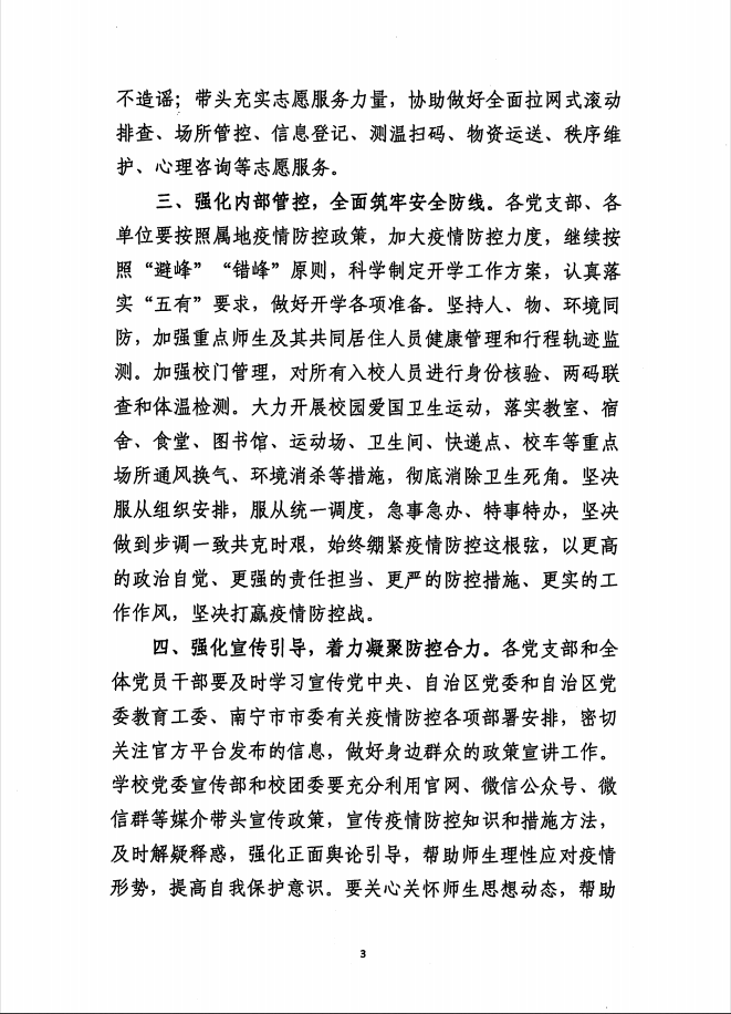 众志成城 共克时艰 铸就校园疫情防控的铜墙铁壁——致学校各党支部和全体党员干部的一封信
