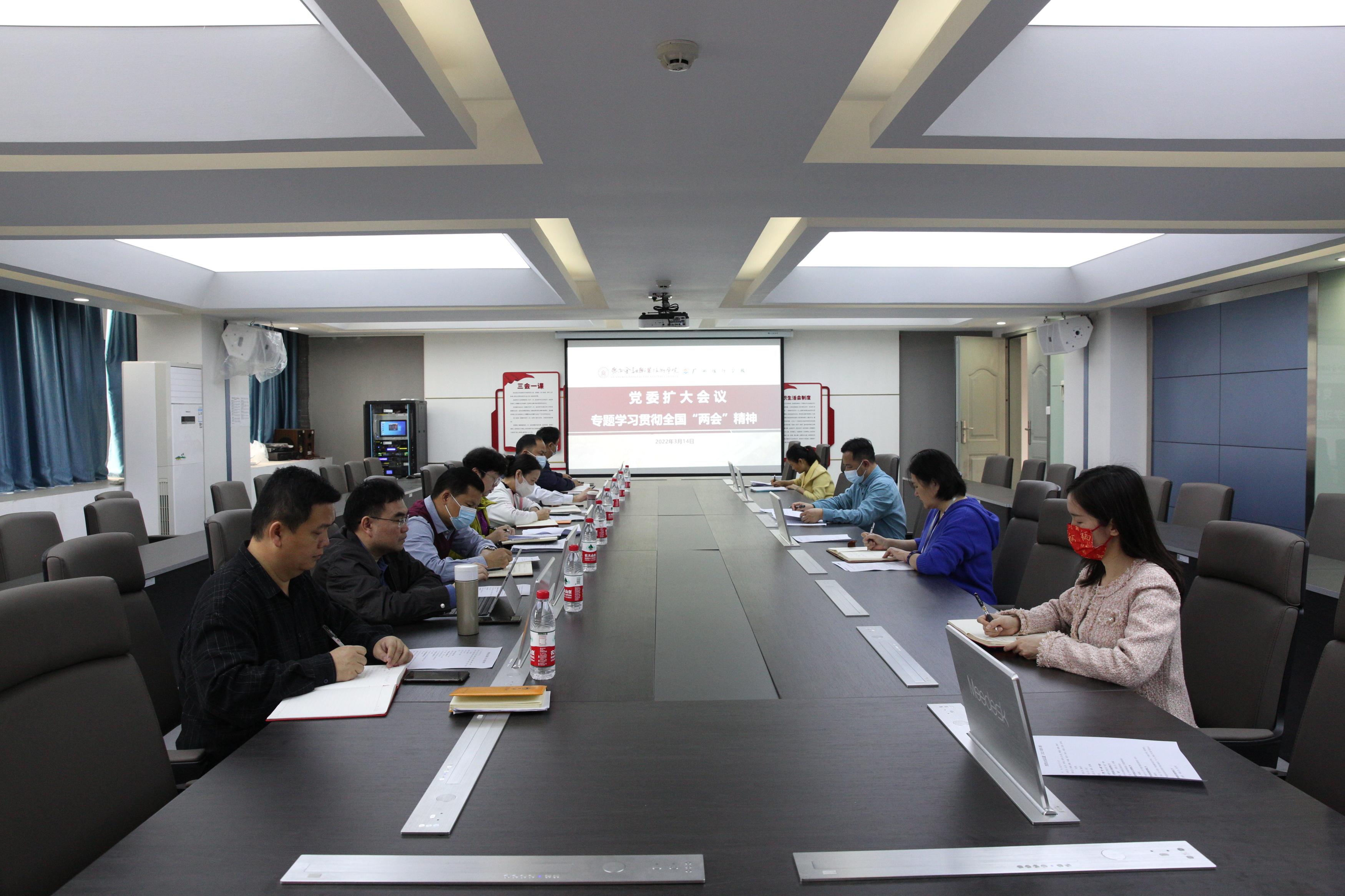 3月14日上午,学校在西校区512会议室召开党委扩大会议,专题学习全国两会精神。学校领导、党委委员、党委宣传部、组织人事处、纪检监察室相关负责人参加会议。党委书记沈立君主持会议并讲话。