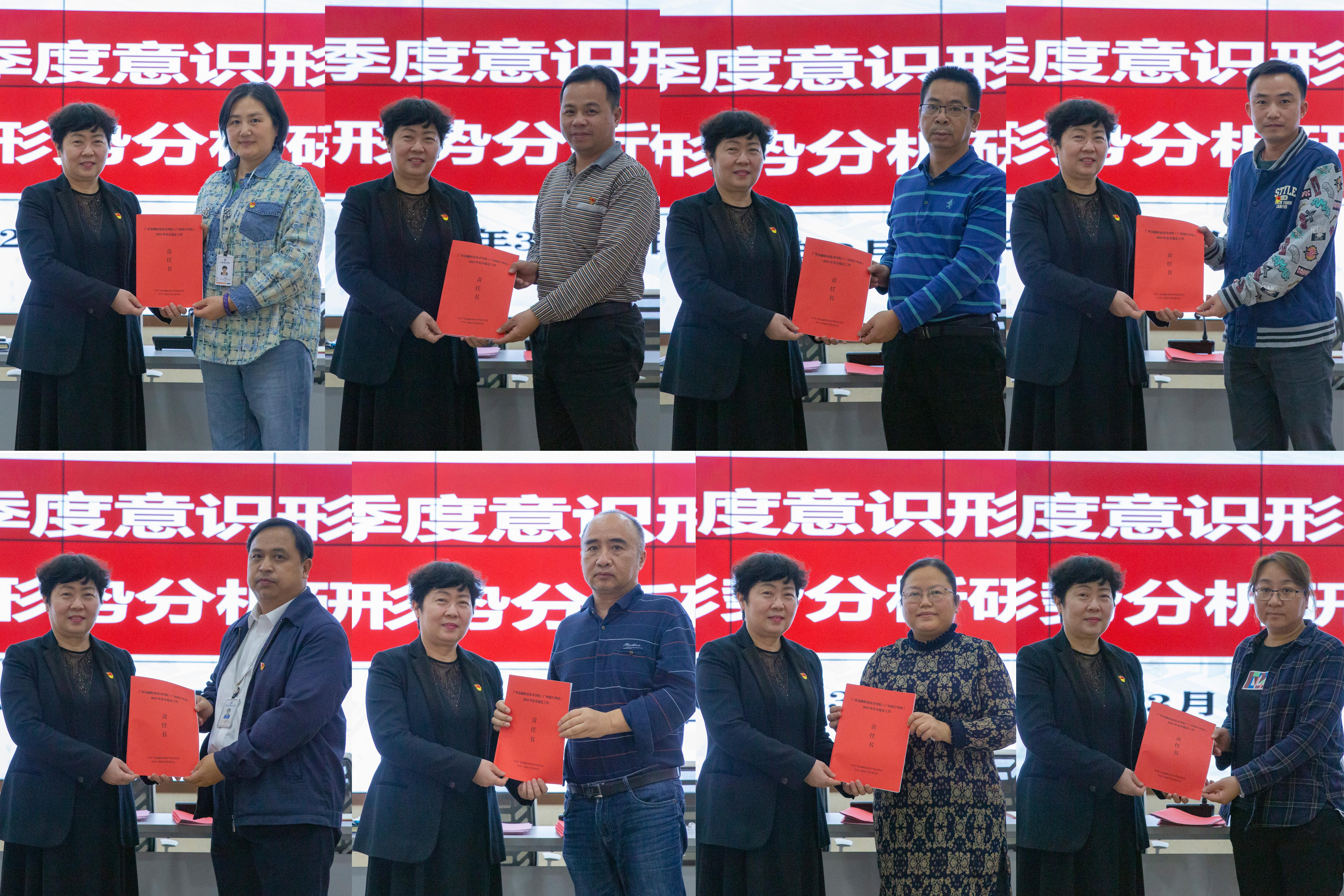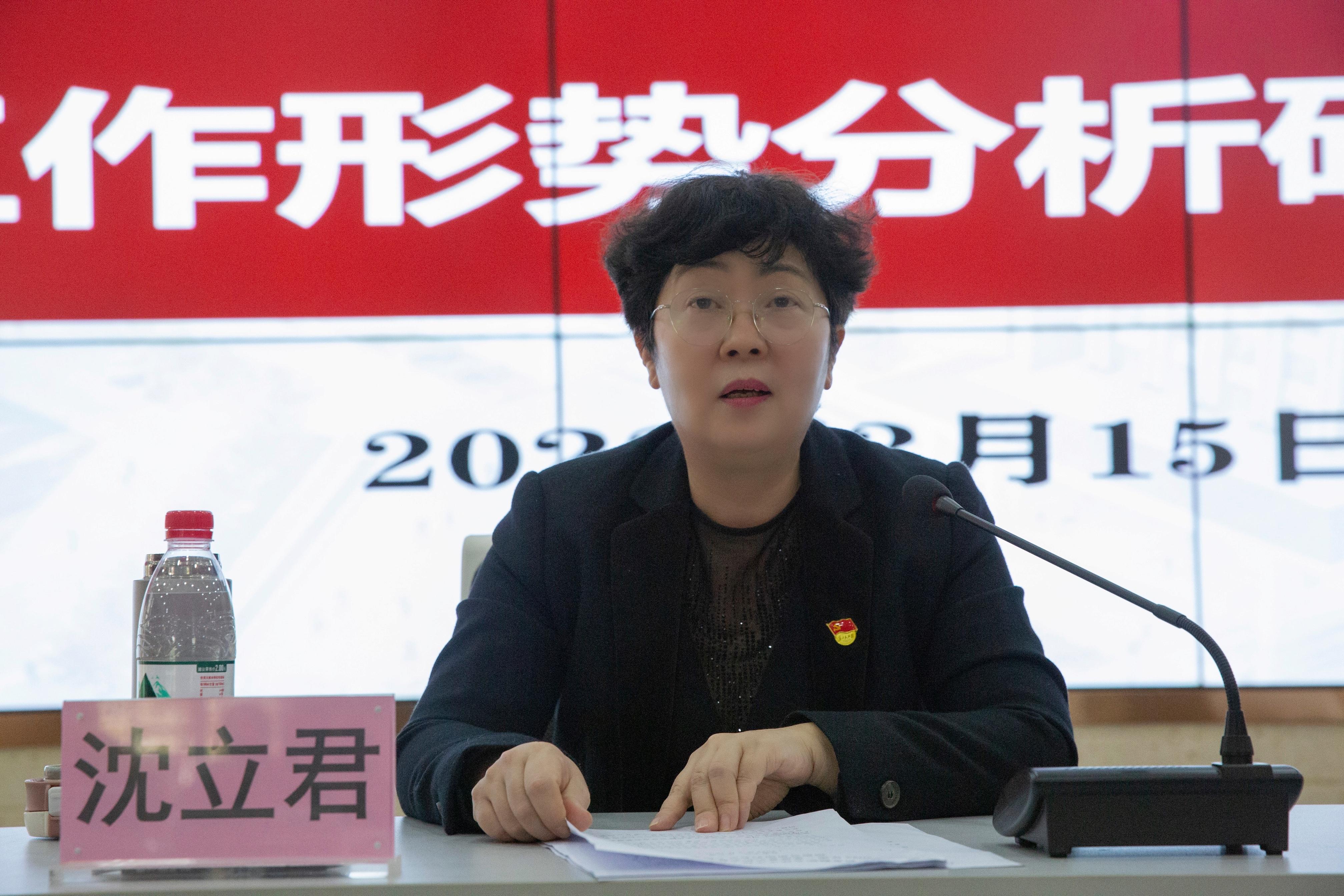 会上,沈立君书记传达了2022年第一次全区教育系统意识形态和校园安全稳定工作形势分析研判会议精神,汇报了我校2021年意识形态和安全稳定工作的情况,对当前我校意识形态领域和安全稳定存在的主要风险进行了分析研判,并对做好下一阶段的重点工作进行了部署。她强调,今年是一个政治大年,做好今年的意识形态和安全稳定工作,要坚持用习近平新时代中国特色社会主义思想武装头脑,突出迎接宣传贯彻党的二十大这条主线,稳中求进、守正创新。一是提高政治站位,高度重视疫情防控工作。二是进一步制定科学措施,责任落实到岗到人。三是严格执行制度,加强疫情防控工作的检查监督。四是认真履职尽责,确保封闭管理期间校园安全稳定。