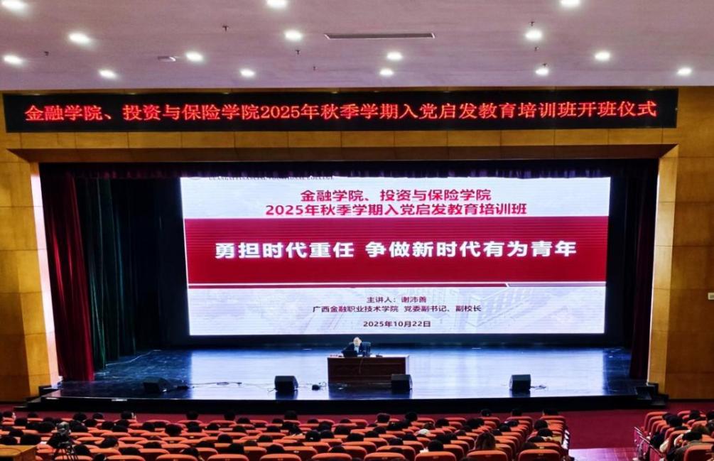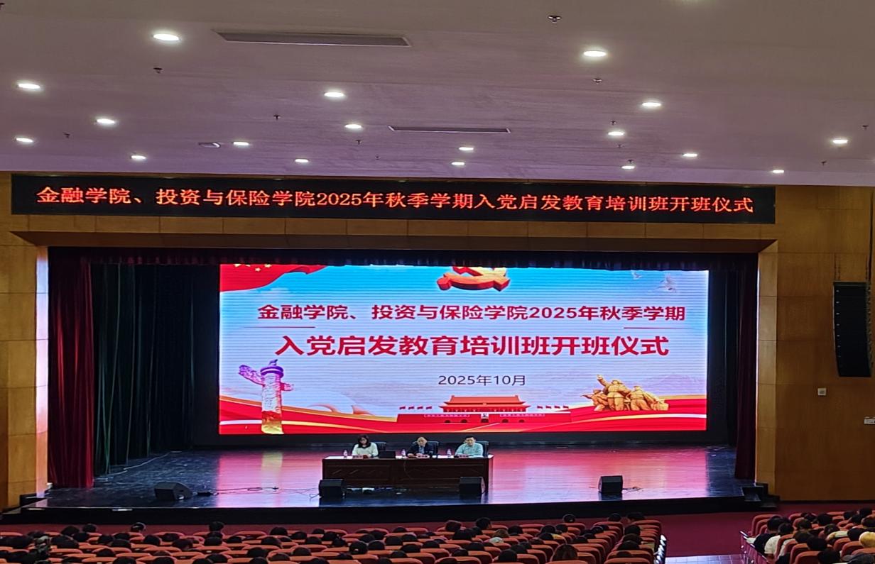 为引导2025级学生端正入党动机,筑牢理想信念根基,坚定不移听党话、跟党走,10月22日,我校金融学院党总支和投资与保险学院党总支在西校区国际会议中心联合开展2025级学生入党启发教育培训班开班仪式。学校党委副书记、副校长谢沛善出席会议并讲授专题党课,学校党委委员、党委组织部部长、金融学院党总支书记周海峰出席会议并讲话、投资与保险学院党总支书记、院长黎秋华出席会议,金融学院、投资与保险学院2025级全体学生及辅导员参加会议。