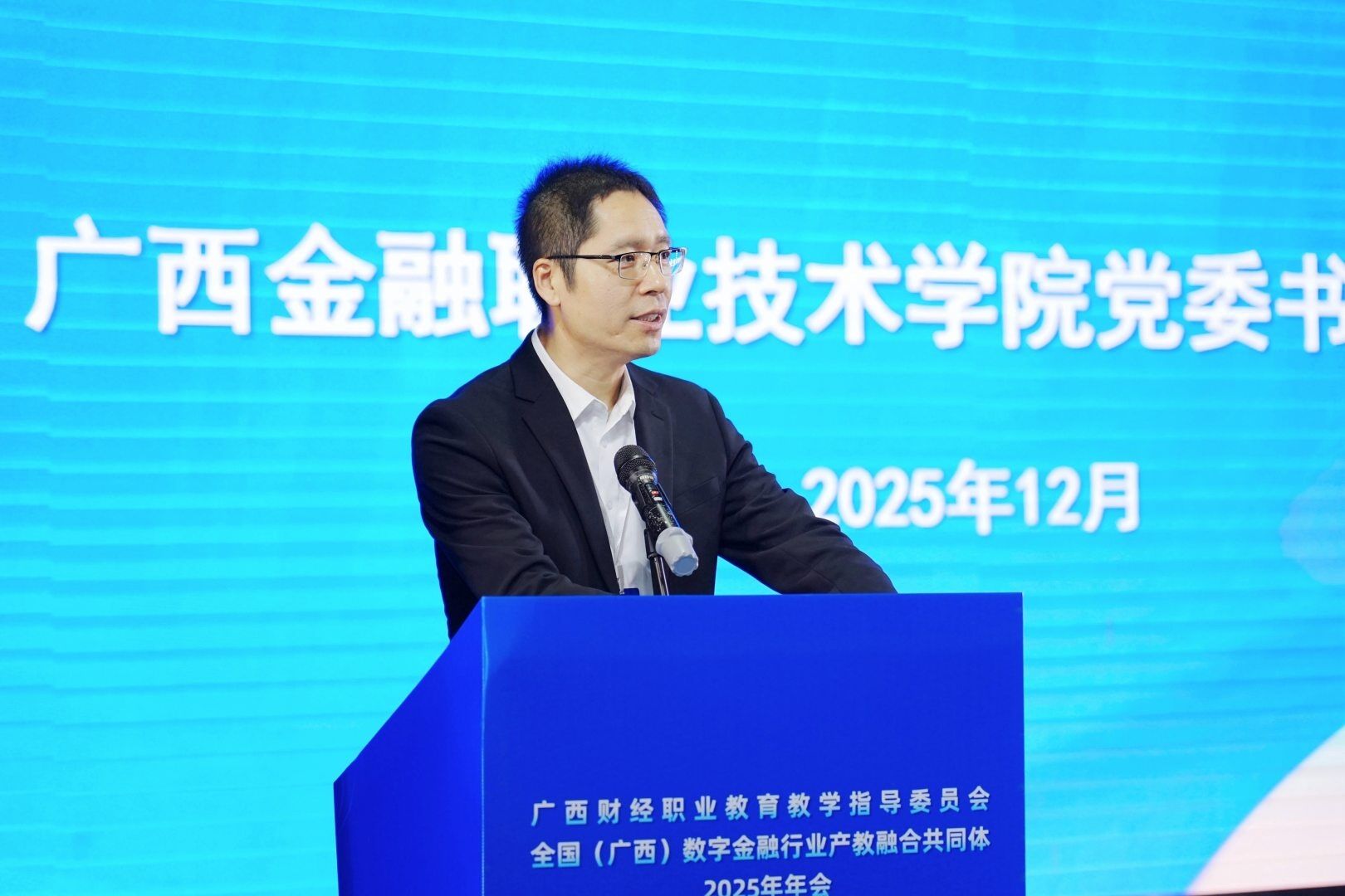 广西金融职业技术学院党委书记李高岩、广西财经学院副校长唐红祥、国海证券股份有限公司数智运营部副总经理李斌、广西证券期货基金业协会副主任黄嘉淇等领导出席大会。大会由广西金融职业技术学院党委副书记、副校长谢沛善主持。