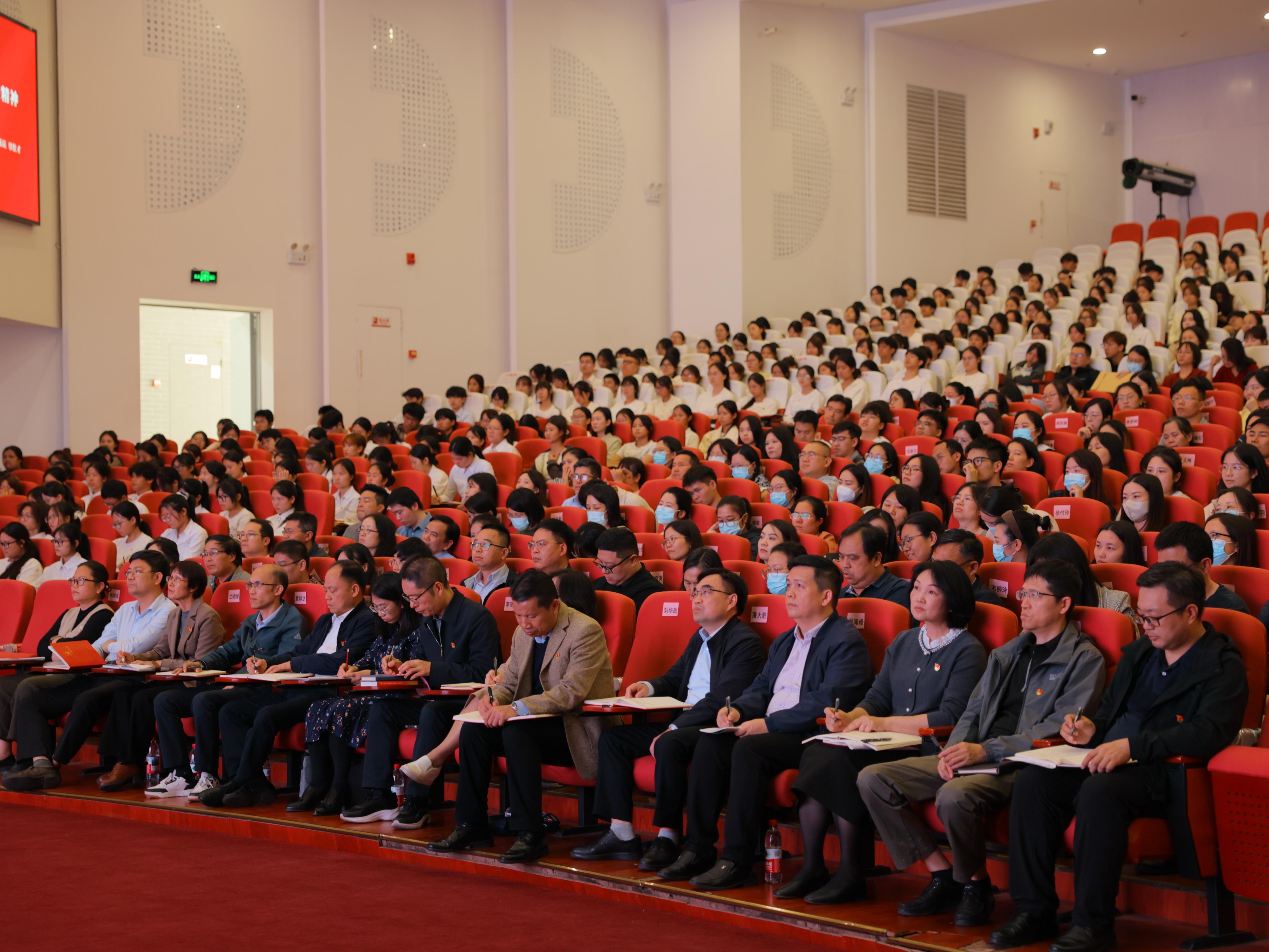 学校领导、全体教职工和部分学生代表约1000人聆听报告会。