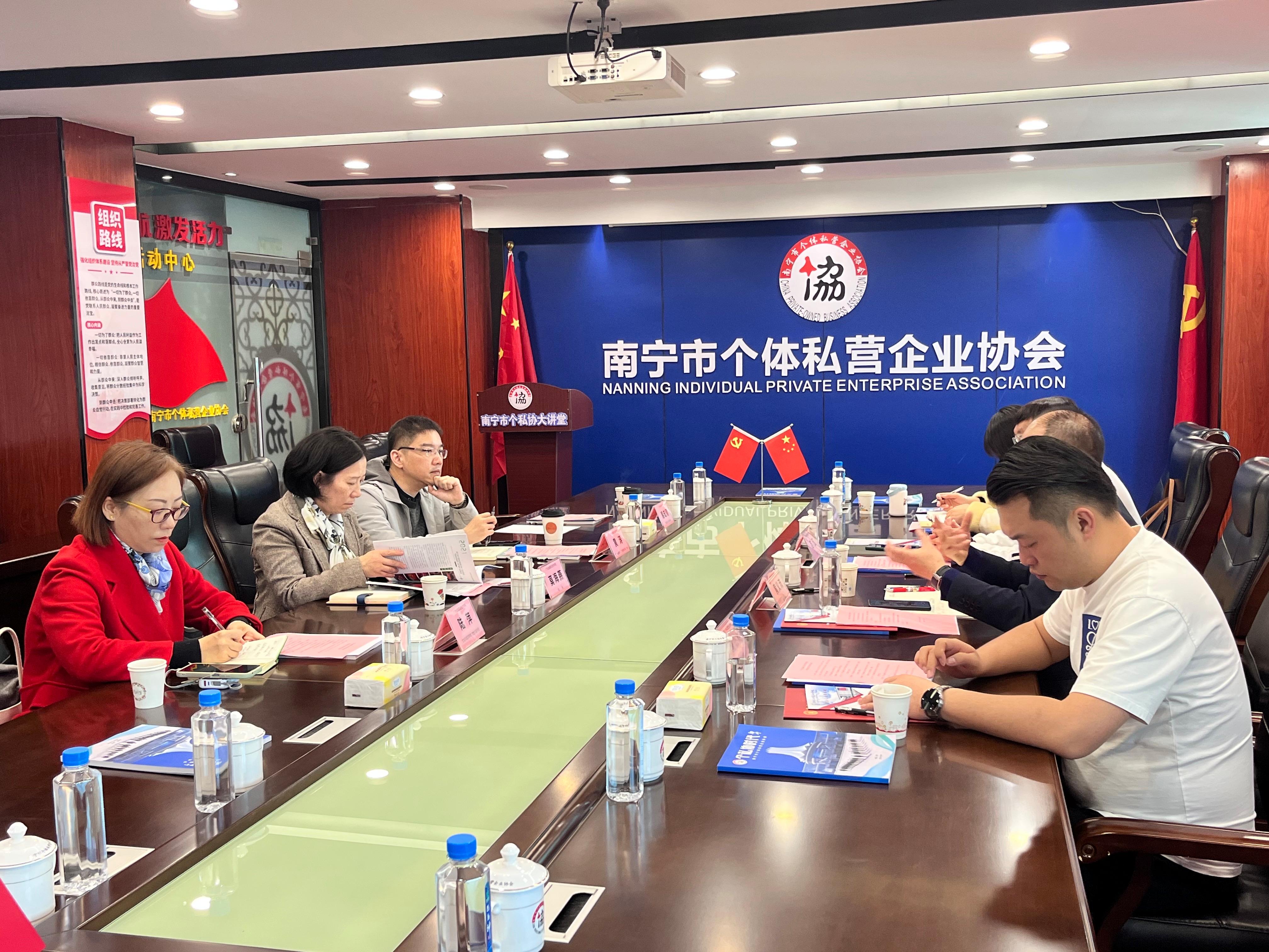 下午,访企拓岗团队转赴南宁市个体私营企业协会。协会执行会长黄义沛、黄杰明,秘书长范江等热情接待了我校一行。大家共同观看了协会宣传片,黄义沛执行会长详细介绍了协会的发展历程、组织架构、服务职能及庞大的会员企业资源网络。莫海燕校长在讲话中感谢协会搭建的宝贵平台,指出个体私营经济是市场经济的重要组成部分和就业“蓄水池”,希望通过与协会的常态化合作机制,为我校毕业生发掘更多优质、灵活的就业岗位,同时探索联合开展职业培训、创业指导等多元化服务。协会方表示,将积极发挥桥梁纽带作用,精准匹配会员企业的人才需求与学校的专业供给,共同为服务地方经济社会发展贡献力量。交流环节,双方就建立联络机制、定期举办专场招聘会、共建就业实践基地等具体合作事项进行了深入探讨并达成初步共识。座谈会结束之后,莫海燕校长一行还到协会下属的“露嘟嘟优品汇”线下超市和直播基地进行实地参观和考察协会在新媒体营销方面对毕业生的岗位需求,并与协会会长覃启站进行交流。最后,活动在愉快的合影留念中圆满结束。