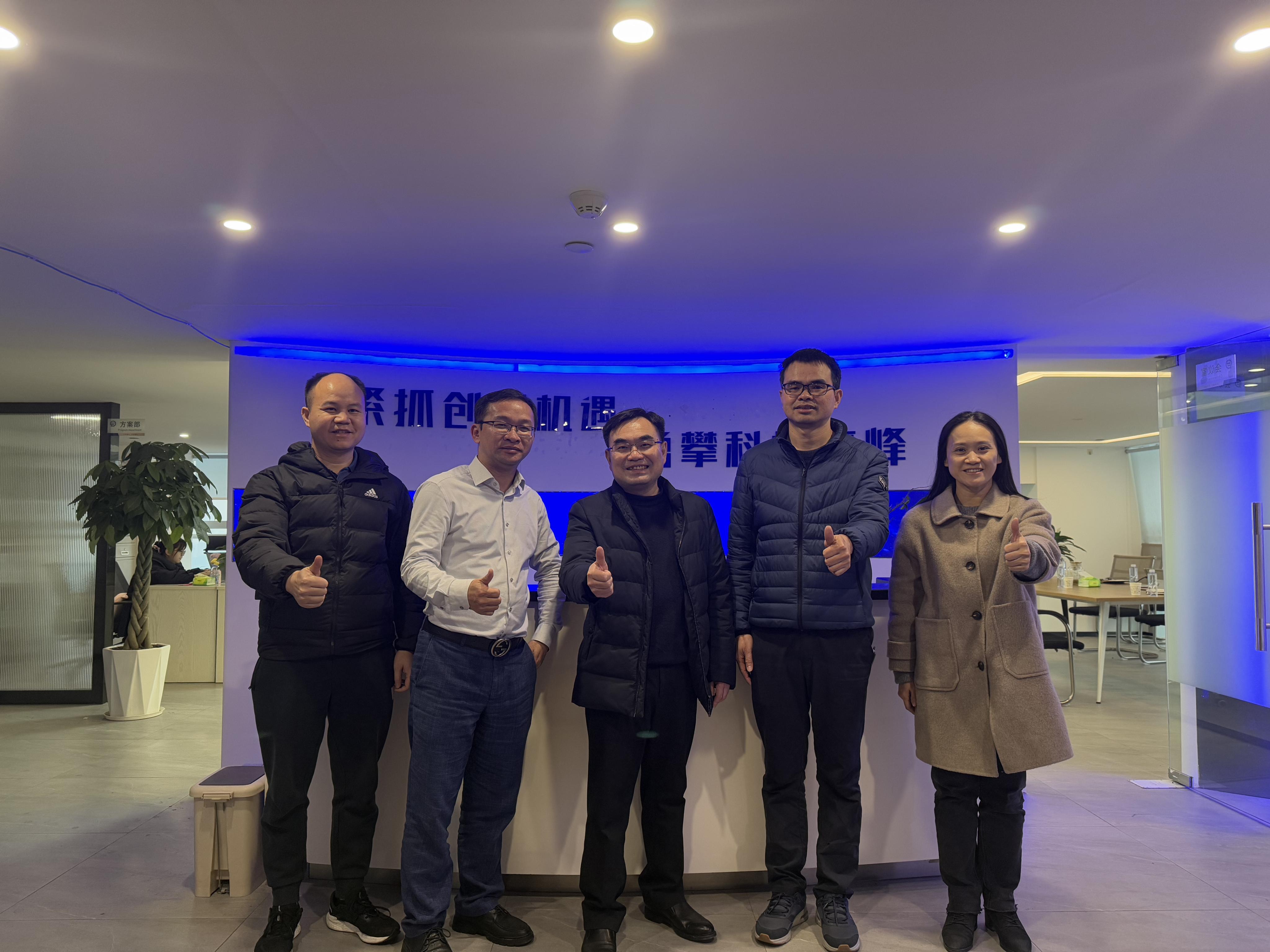 走访首站为广西讯驰信息科技有限公司,公司总经理胡志超对潘大胜副校长一行表示热烈欢迎,并详细介绍了企业发展概况、核心业务布局及人才需求情况。