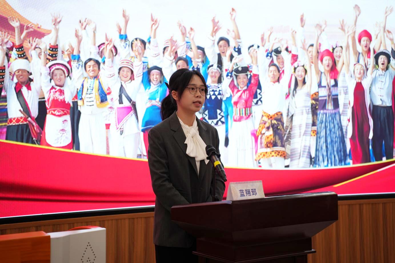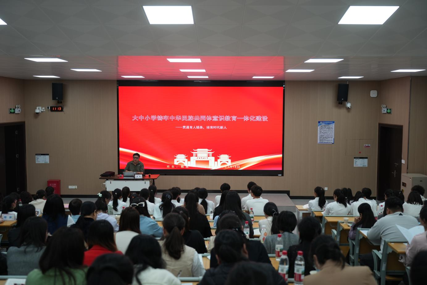 为贯彻落实习近平总书记在学校思想政治理论课教师座谈会上的重要讲话精神以及党中央关于推进大中小学思政课一体化建设的重要部署,3月18日,南宁市西乡塘区2026年春季学期大中小学思政课一体化建设暨铸牢中华民族共同体意识教育教学研讨会在广西金融职业技术学院顺利举办。广西金融职业技术学院党委副书记刘华政、南宁市西乡塘区教育局副局长吴润连出席会议并致辞。南宁市西乡塘区教育局及其辖区90余所中小学,我校相关部门负责人、全体思政课教师及学生代表参会。