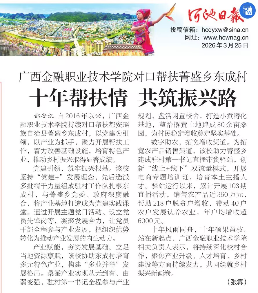 原链接:【河池日报】广西金融职业技术学院对口帮扶菁盛乡东成村:十年帮扶情,共筑振兴路