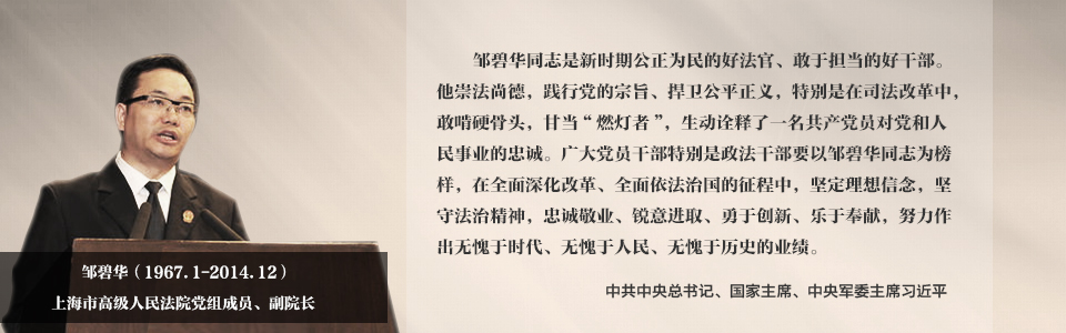 邹碧华同志是新时期公正为民的好法官、敢于担当的好干部,是用生命践行“三严三实”要求的时代楷模。