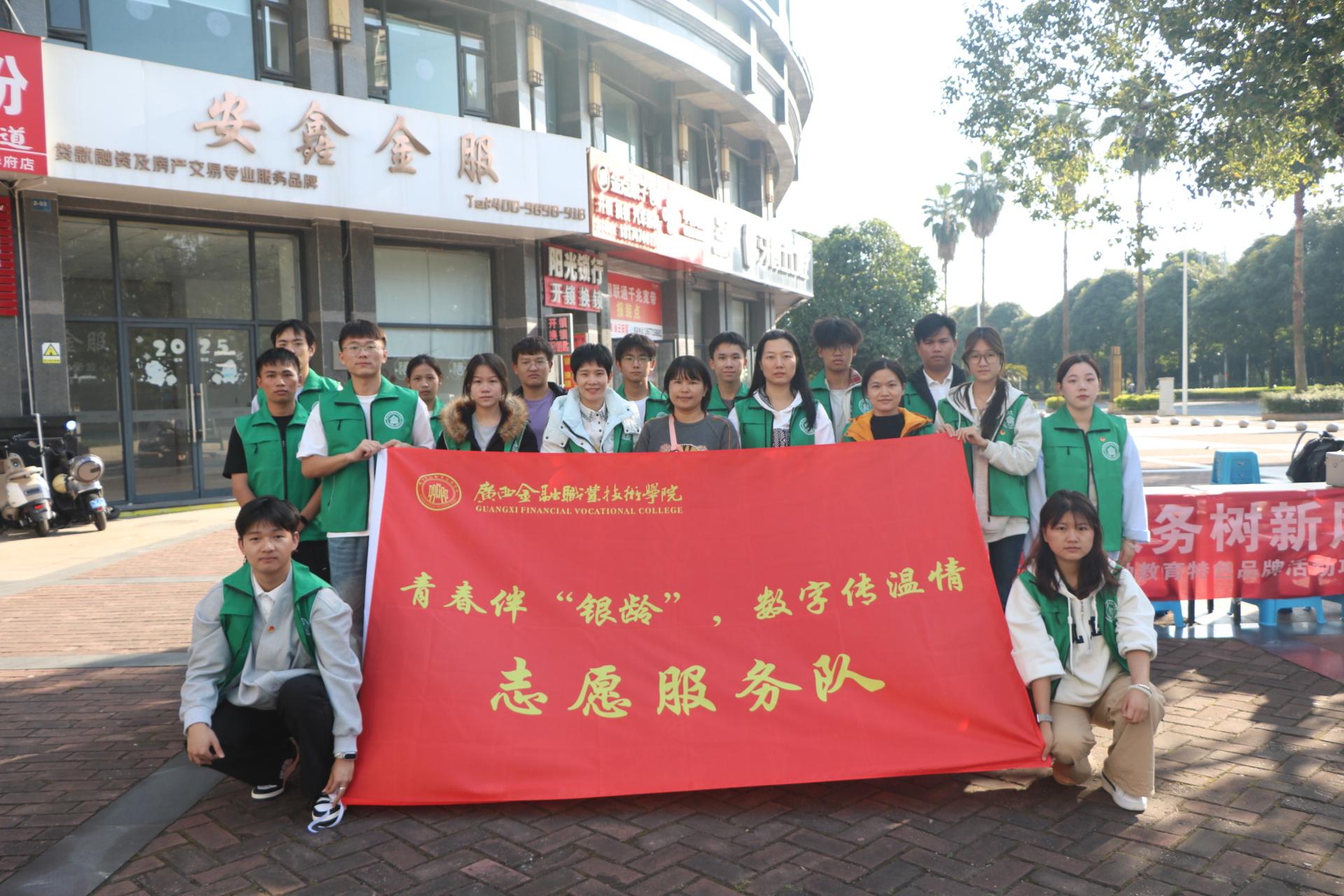 活动开始,志愿服务队的同学手持“青春伴‘银龄’,数字传温情”旗帜,整齐列队,精神抖擞。他们携带专业手机清洁工具与精心编印的手机使用手册,满怀热情地踏上这场温暖的社会实践之旅。