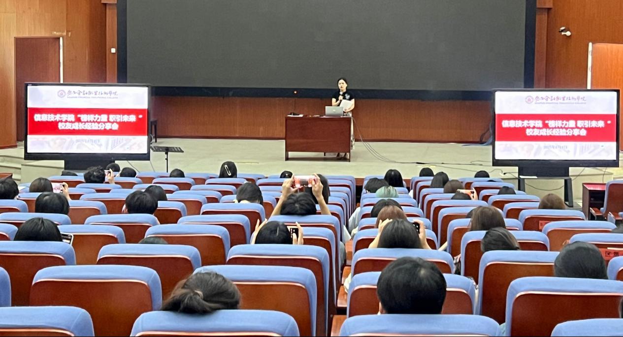 分享会伊始,信息技术学院专职辅导员高雅丽老师对2022级离校毕业生重返校园表示热烈欢迎,对他们在各自领域取得的卓越成就表示衷心祝贺,强调:“毕业生是学校最宝贵的财富和最生动的育人资源,他们奋斗的足迹和成功的经验,是激励在校学子砥砺前行的强大动力。她寄语在场同学珍惜这次难得的学习机会,用心聆听,积极思考,从学长学姐的成长故事中汲取力量,明确方向”。