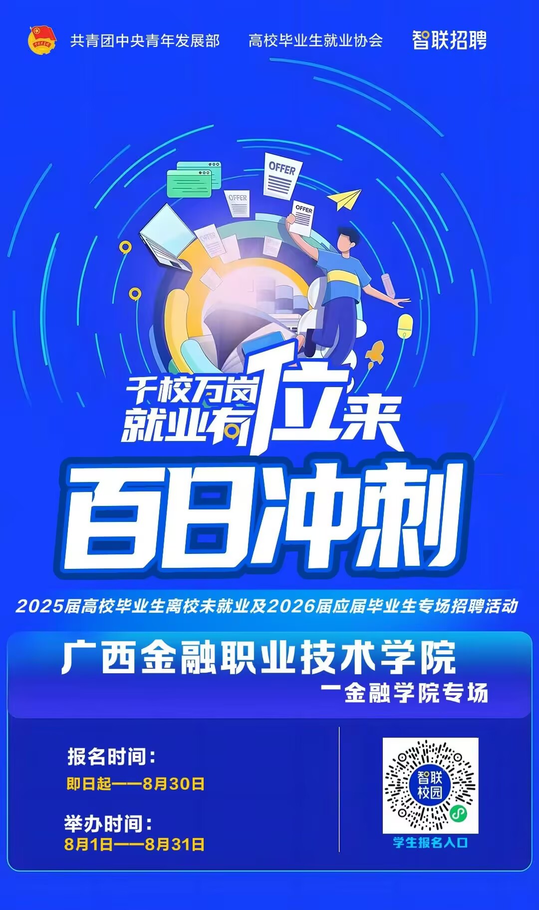这一阶段性成果的取得,源于学院在7-8月集中实施的就业攻坚专项行动。该行动创新构建线下+线上双轮驱动模式,通过精准对接企业需求与人才供给,实现三大突破:一是规模突破,累计联动331家优质企业,提供涵盖金融科技、保险精算、数字营销等领域的665个高匹配度岗位;二是效能突破,吸引逾千人次学生参与,形成供需双向奔赴的良性循环;三是服务突破,线下双选会精选23家行业领军企业,携带222个核心岗位开展校园专场招聘,完成简历筛选69份、面试46人次;线上平台与智联招聘深度合作,通过智能算法精准匹配308家企业443个职位,促成487名学生完成252份高质量简历投递,实现人岗匹配度与求职效率双提升。