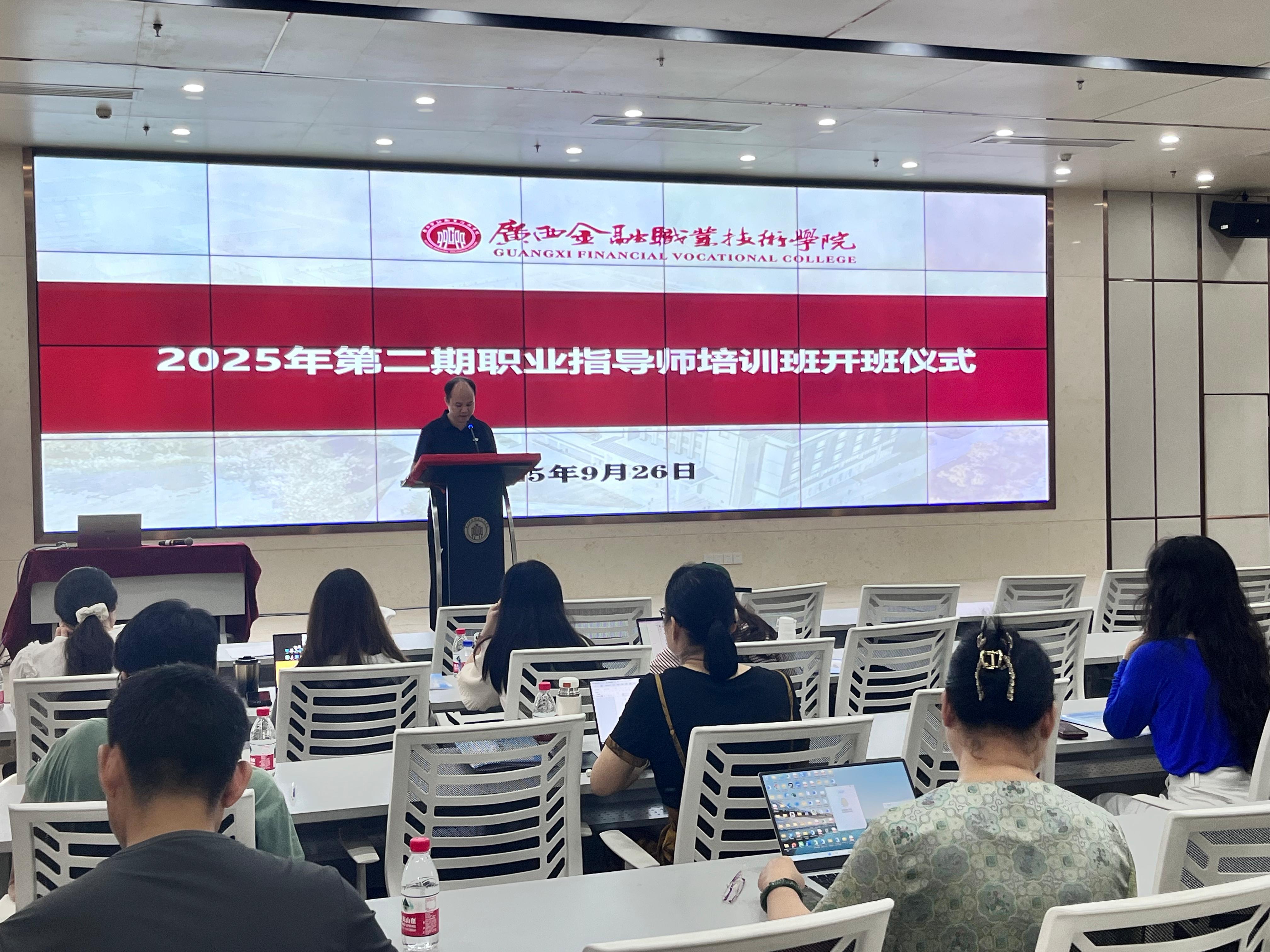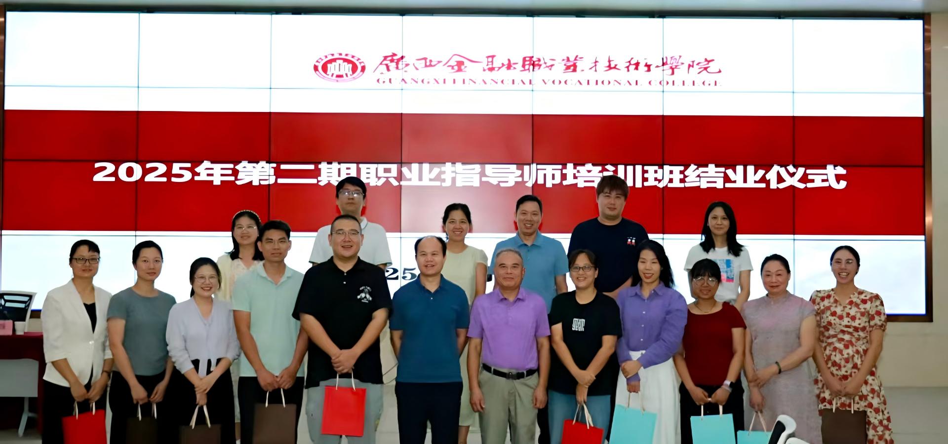 9月27日下午,随着结业证书颁发完毕,广西金融职业技术学院2025年第二期“职业指导能力提升”培训班在西校区道德大讲堂圆满落下帷幕。学院招生就业处、各二级学院专职及兼职辅导员共55人完成全部课程,即将于国庆节后集体参加全国职业指导师等级证书考试。