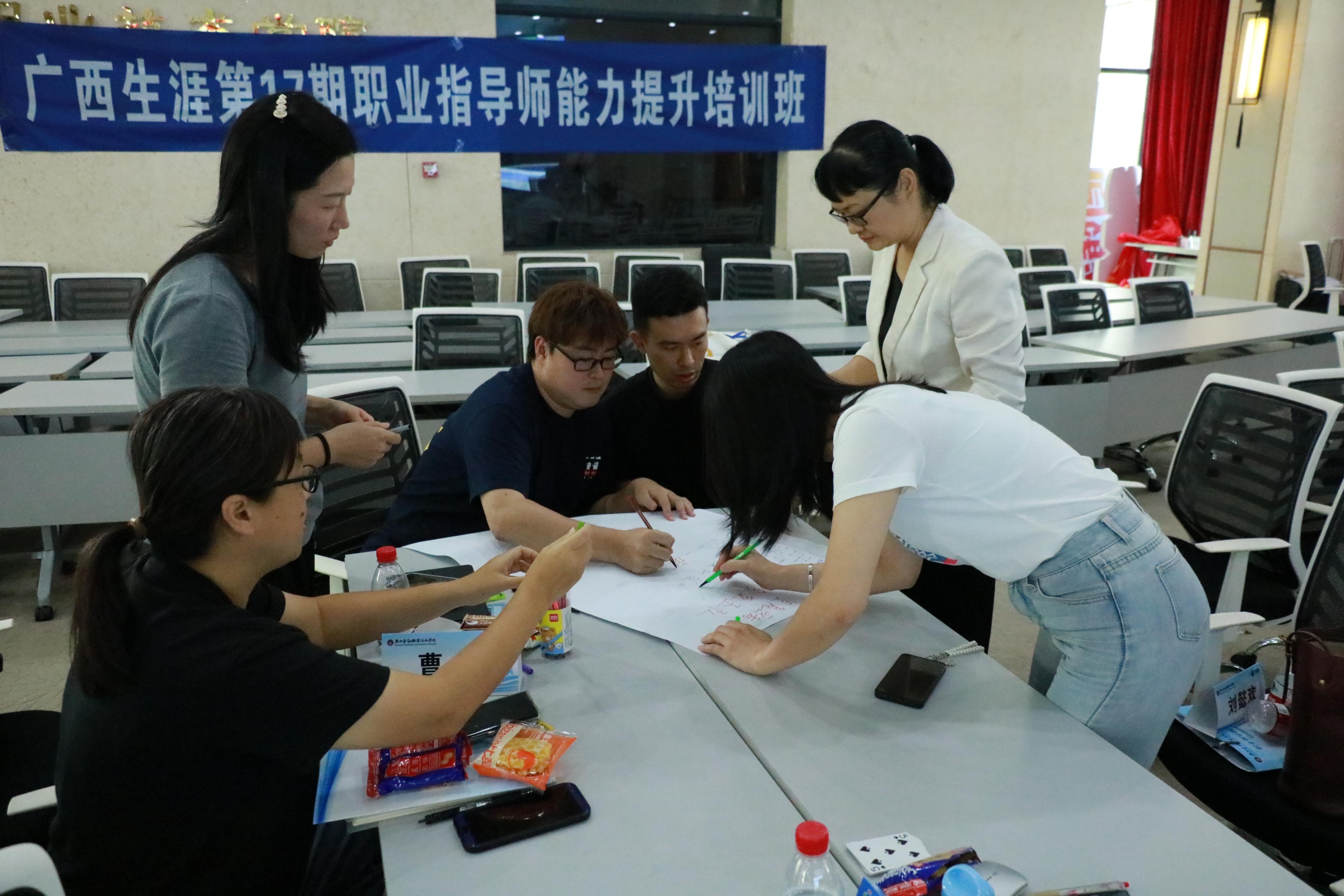 培训紧贴“职规赛+就业指导”双轮驱动需求,特邀五位区内外权威专家现场授课。重庆亿商信息技术有限公司总经理、职规赛国赛金奖导师喻春作《职规赛师资培训》专项辅导;广西国际商务职业技术学院招生就业处副处长蒙振分享《构建全员育人体系,护航毕业生高质量就业》;广西机电职业技术学院人工智能技术学院副书记覃媛带来《制度创新驱动下的就业工作实践》;广西建设职业技术学院副教授、GCDF全球生涯规划师林秀丽讲授《以生涯思维启航成人达己的职业成长征途》;自治区原高校毕业生就业指导中心副主任、高级职业指导师肖强收官主讲《就业指导教师专业化成长之路》。课程采取“专题讲座+案例拆解+分组研讨+情景模拟”四位一体模式,现场互动热烈。学员们普遍反馈:内容“拿来即用”,对备战首届全国大学生职业规划大赛及日常就业指导极具启发。