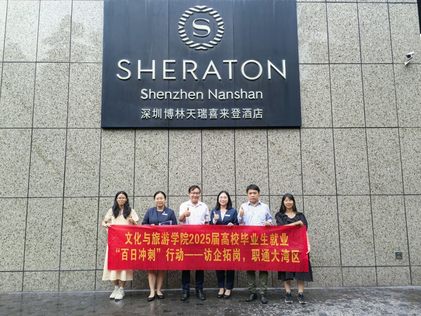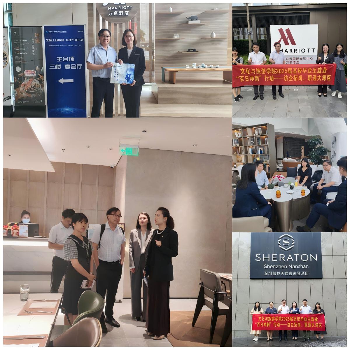 为贯彻落实学校关于2025届毕业生就业工作推进会的相关会议精神,进一步深化校企合作,精准对接区域经济发展对高素质人才的需求,拓宽毕业生就业渠道,广西金融职业技术学院文化与旅游学院刘仁礼院长率队于2025年7月25日-31日赴大湾区佛山、中山、深圳、东莞、广州等5市,开展访企拓岗专项调研行动。调研团队一行4人先后走访了佛山万豪及万怡酒店、中山湾中上城魔法世界、深圳中油阳光大酒店、广州长隆集团有限公司等10家知名企业。期间,校企双方围绕毕业生就业实习、人才联合培养、专业实践平台建设等议题进行了深入交流,达成了多项初步合作意向。