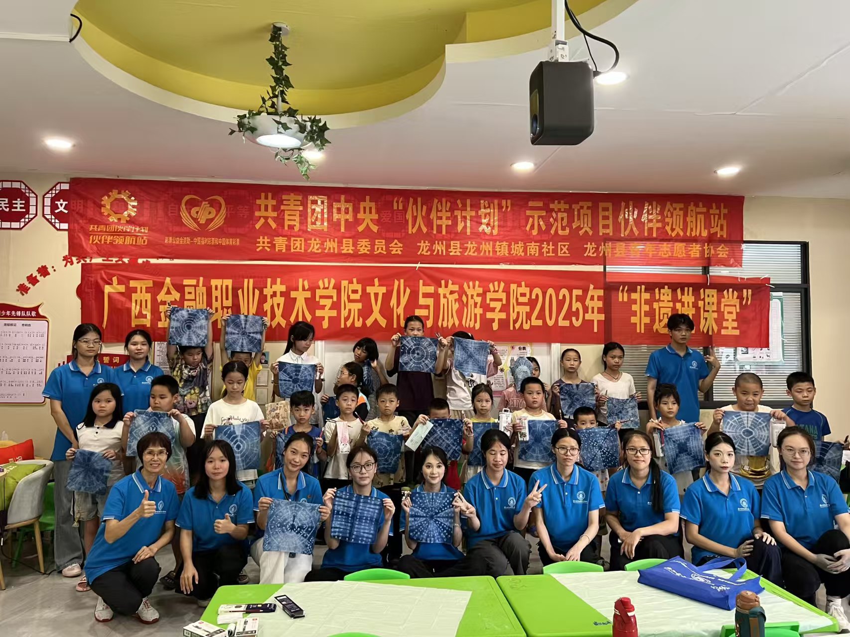 本次“三下乡”社会实践活动,文化与旅游学院龙州星火青拓团以扎染技艺为纽带,成功搭建起高校学子与乡村儿童之间的文化交流桥梁,将非遗的种子播撒在乡村沃土,为乡村文化振兴注入了新鲜血液与创新活力。同时,也让广大青年学子在社会实践的大熔炉中,深刻领略到中华优秀传统文化的博大精深,切实增强了文化自信与民族自豪感,实现了在实践中受教育、长才干、作贡献的活动目标,为乡村发展谱写了激昂奋进的青春乐章,以实际行动诠释了新时代青年的责任与担当,在乡村振兴的壮丽征程中留下浓墨重彩的青春印记,开启了文化传承与乡村发展的崭新篇章。