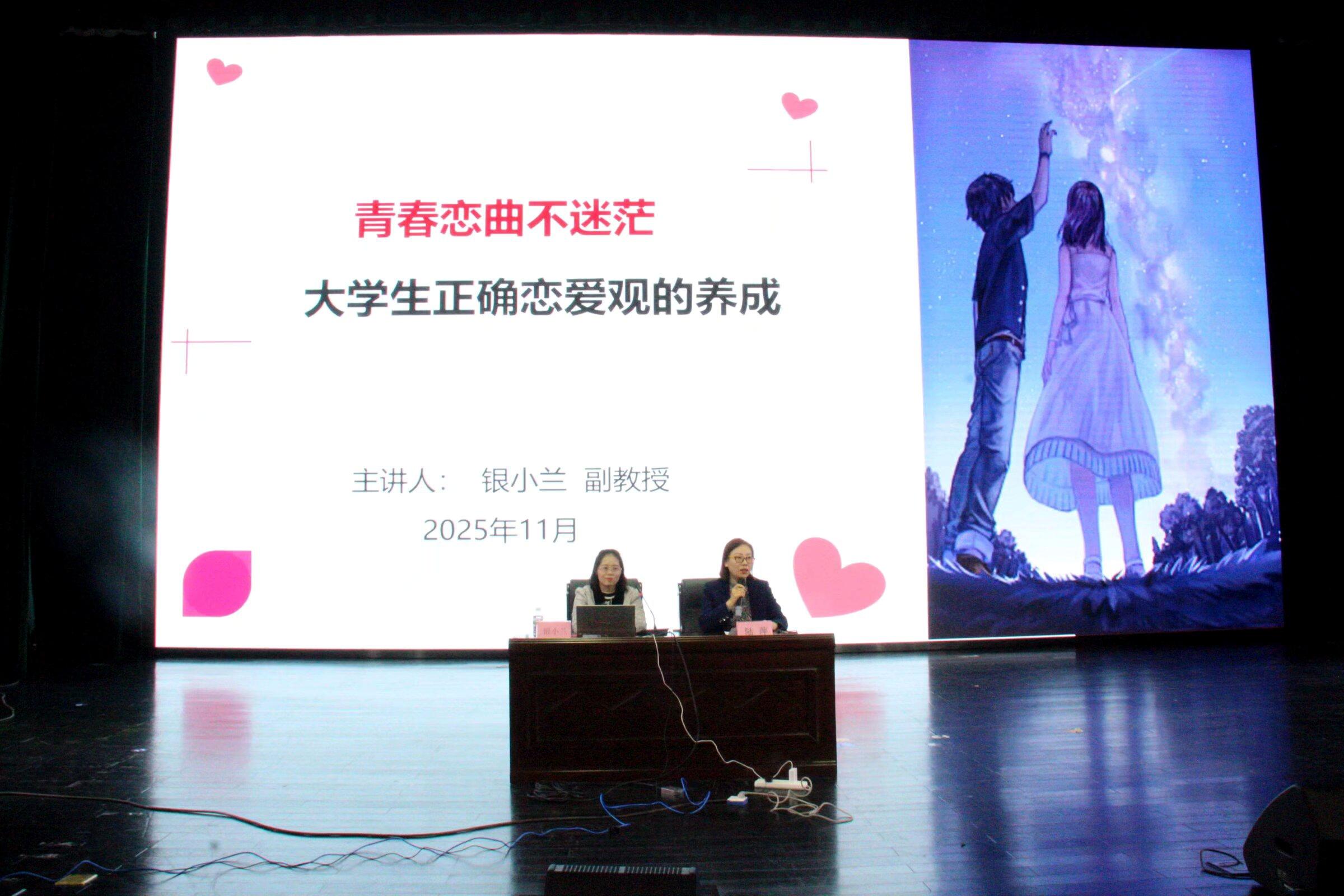 为进一步提升学生的心理健康水平,切实培养学生热爱生活、珍视生命、自尊自信、理性平和、乐观向上的心理品质,促进学生健康成长。2025年11月5日,我院在学校国际会议中心开展了主题为“青春恋曲不迷茫——大学生正确恋爱观的养成”的专题讲座。此次活动由文化与旅游学院党总支副书记陆萍主持,银小兰副教授担任主讲嘉宾,学院中、高职学生代表及辅导员近800人到场聆听。