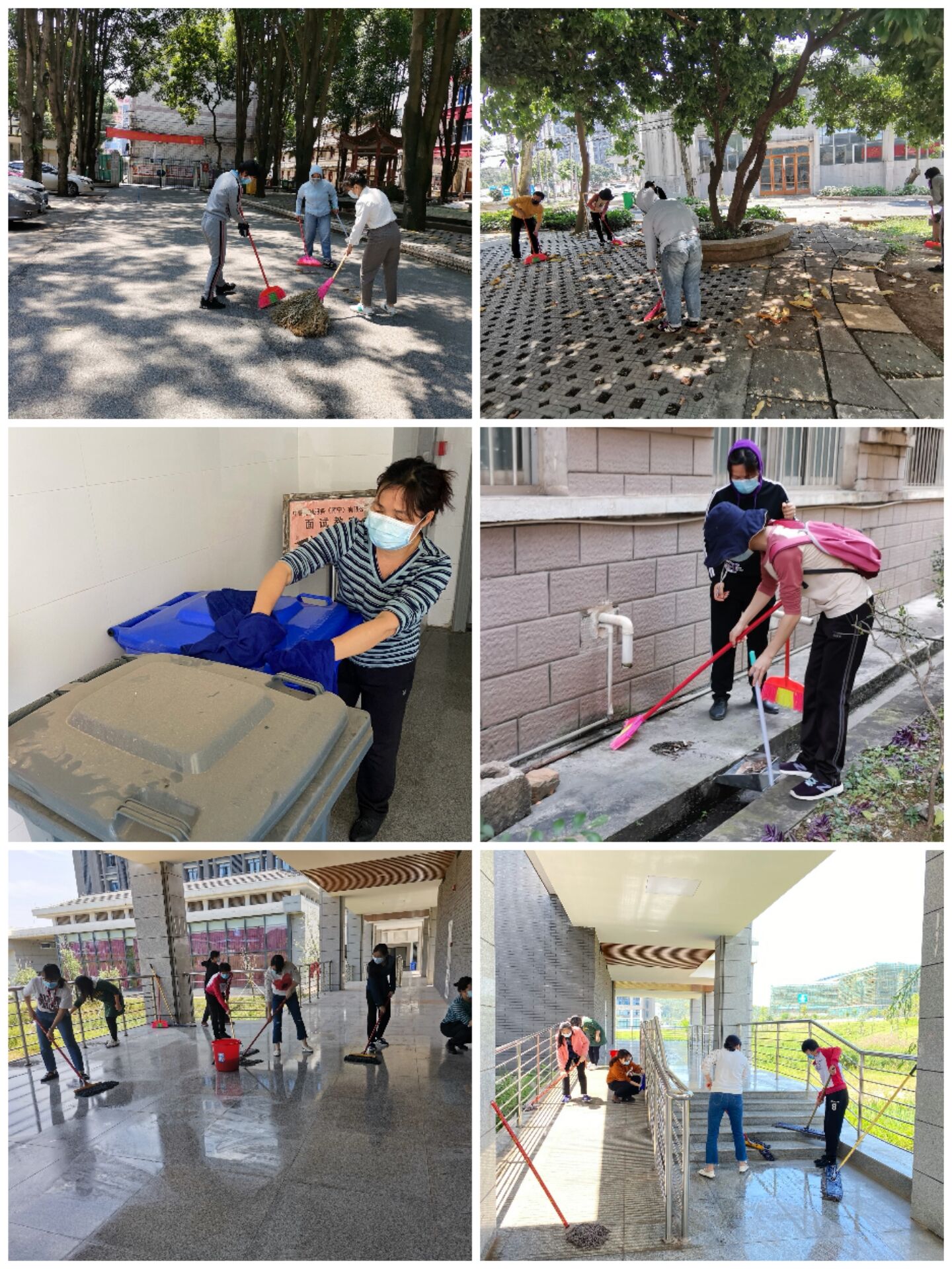 中午利用休息时间,社科部教师准时集合,分工协作展开了大扫除。各位老师不怕苦不怕累,以饱满的热情和积极的状态投入到清洁当中,不仅仅是对地面进行简单的打扫,还对栏杆扶手、玻璃、垃圾桶进行了彻底的清理,经过大家的努力,周围环境焕然一新。参加大扫除的老师表示,虽然大扫除辛苦,但是看到能给返校学生提供一个干清洁干净的学习环境,感到非常值得。