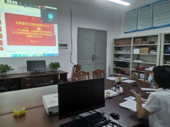 5月19日下午,社科部党支部召开《学习教育部等八部门印发的<关于加快构建高校思想政治工作体系的意见>文件精神》扩大会议,并由支部书记兰晓黎同志向全体同志传达学习。