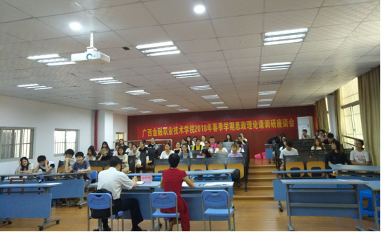 为提高我院思政理论课的教学水平,广泛听取同学们对我院思政理论课教学的意见的和建议,使以后的思政课教学工作中存在的问题得以更有针对性的解决,广西金融职业技术学院思政理论课教学质量年系列活动之——2018年春季思政课教学工作师生座谈会在社科部的组织下于2018年6月22日中午在长岗校区瑞兴楼101教室召开。