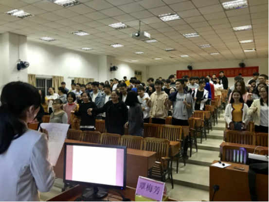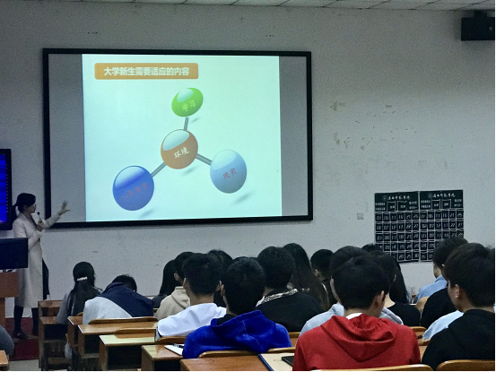 为提高学生的心理健康水平,促进新生加快适应大学生活,社科部举办2018级新生适应性活动。11月26日晚特别邀请广西财经学院心理中心覃梅芳老师到长岗校区进行专题讲座,为2018级新生答疑解惑。覃老师是国家二级心理咨询师,国家中级素质拓展师,有丰富的心理咨询经验。开场的暖身小游戏,让现场气氛立刻活跃起来。随后覃老师从网络热议的"大学遗憾清单"说起,分别就自然环境的适应、人际关系的适应、学习的适应、心理落差的适应、现实的适应五大方面作出详细阐述,鼓励大家主动适应,并提出了许多有效建议。覃老师指出,要积极利用身边资源和网络资源,选课与参与社团选我所爱,爱我所选。善于利用微笑、赞美、倾听、换位思考和乐于助人五件法宝打造和谐的人际关系。