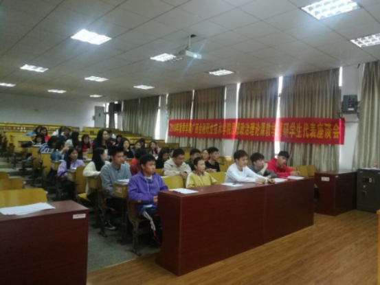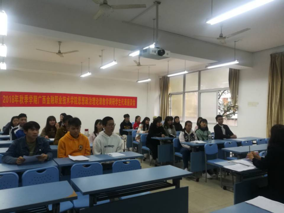 为提高我院思政理论课的教学水平,广泛听取同学们对我院思政理论课教学的意见的和建议,使以后的思政课教学工作中存在的问题得以更有针对性的解决,广西金融职业技术学院思政理论课教学质量年系列活动之——学生代表座谈会在社科部的组织下,长岗校区于2018年12月20日中午在瑞兴楼202教室召开,东校区2018年12月21日在电教一楼召开。
