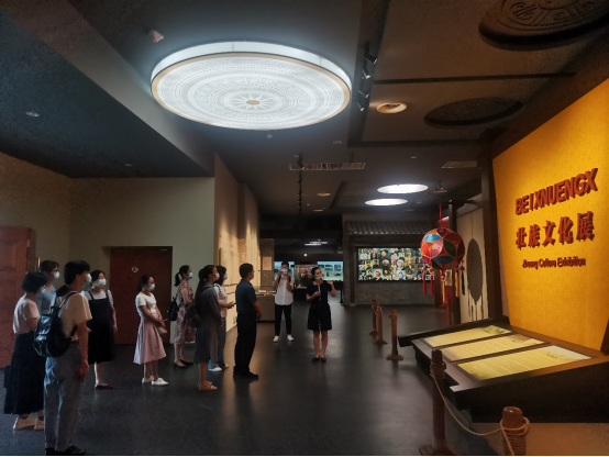 党员同志在讲解员的带领下,沿着4月27日习近平总书记的考察路线,参观展览各个展厅,深入学习习近平总书记的重要讲话精神。参观了广西最具特色的民族文物专题陈列《穿越时空的鼓声——铜鼓文化》和馆内常设的大型主题陈列——《五彩八桂——广西民族文化陈列》。其中,《五彩八桂——广西民族文化陈列》主题分为家园展区、匠心神韵展区、霓裳羽衣展区、和谐乐章展区四大板块。大家感受到了壮族的地域文化魅力,了解了各民族团结融合、共同奋进的历史。