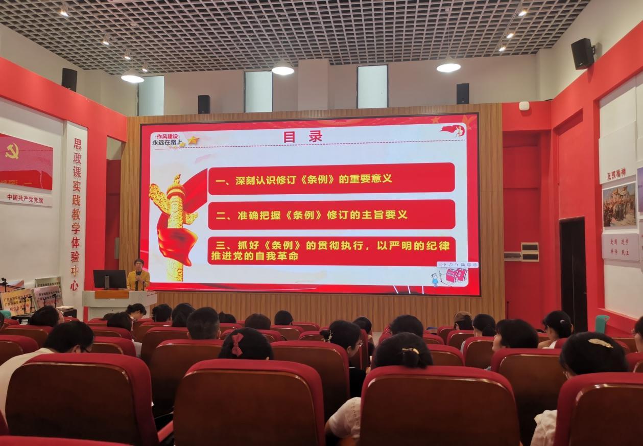 首先,兰书记结合支部教育教学工作实际,紧紧围绕深刻认识修订《条例》的重要意义、准确把握《条例》修订的主旨要义、抓好《条例》的贯彻执行,以严明的纪律推进党的自我革命三个方面进行学习和解读,深入浅出地阐述了《条例》中的各项规定,使党员教师对党的纪律要求有了更清晰、更深刻的认识,增强遵规守纪自觉。