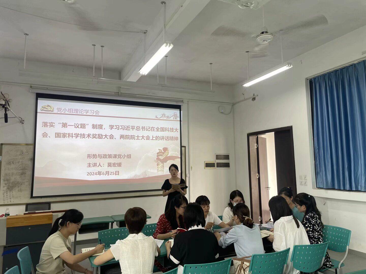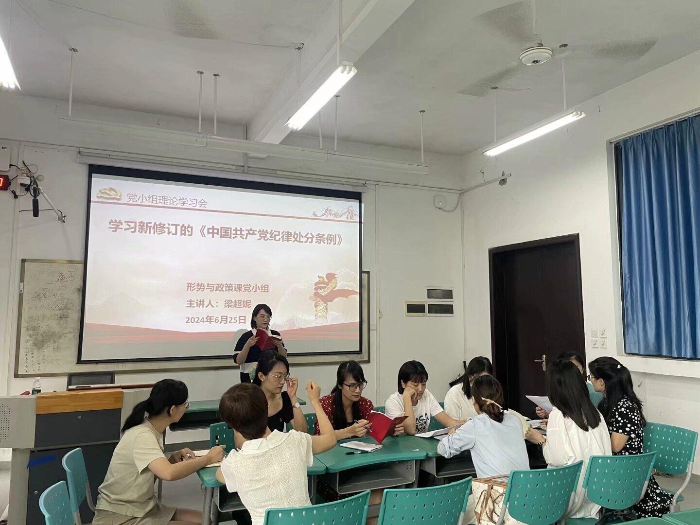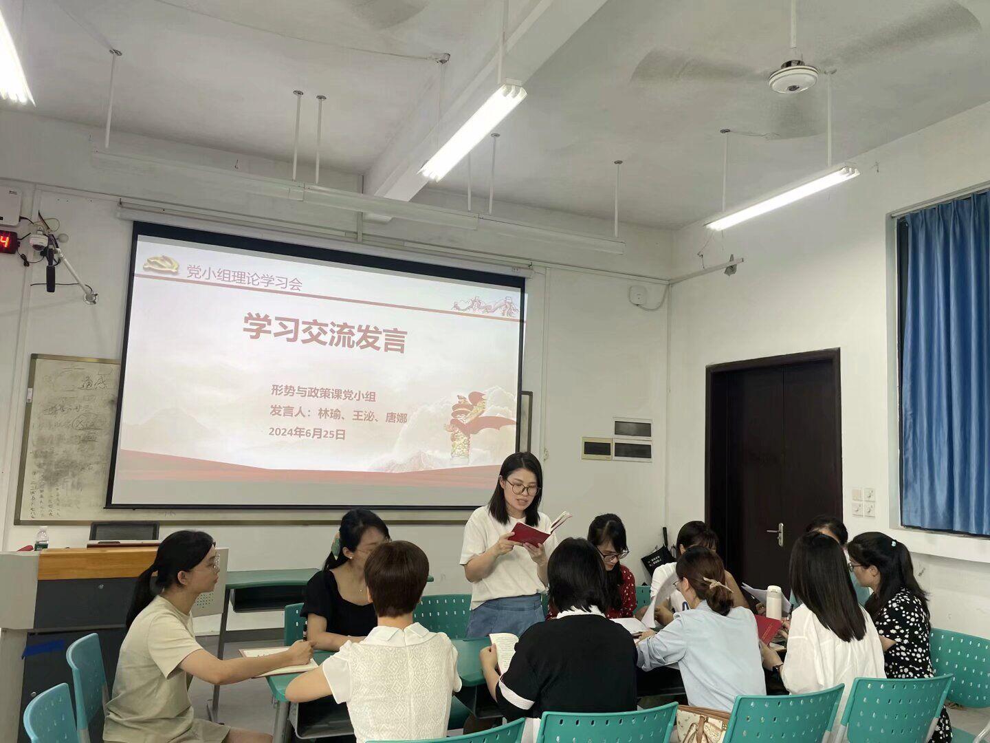 6月25日下午,马克思主义学院党支部形势与政策课党小组在西校区教学楼3#B103召开6月份党员政治理论学习会。